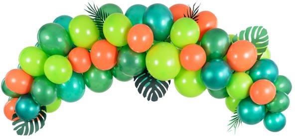 GIRLANDA BALONOWA z balonów Dinozaury DIY 200cm | KUCMAR Zestaw balonów pozwalający na stworzenie girlandy balonowej. Girlanda organiczna, kompozycja balonowa o niestandardowym kształcie składająca się z różnorodnych balonów. Girlanda może być skomponowana w dowolnym kształcie, adekwatnym do miejsca gdzie ma się znaleźć. Niewątpliwie jest to oryginalny sposób dekoracji na przyjęciach urodzinowych. Zestaw zawiera: 16 balonów metalizowanych w kolorze zielonej trawy, 17 balonów pastelowych w kolorze zielonego jabłuszka, 14 balonów metalizowanych w kolorze zielonym, 13 balonów pastelowych w kolorze pomarańczowym ok. 2.5 m taśmy do girland. Pozwala to wykonać girlandę o długości ok. 200 cm. Wielkość balonów po nadmuchaniu ok. 30 cm. Z balonów można wykonać girlandę lecz nie tylko. Można je wykorzystać do dekoracji na stelażu lub po napełnieniu helem stworzyć bukiety, wszystkie balony z zestawu unoszą się po napełnieniu helem. Zestaw spakowany w gustowne opakowanie, świetny pomysł na prezent! Zestaw nie zawiera liści widocznych na wizualizacji.