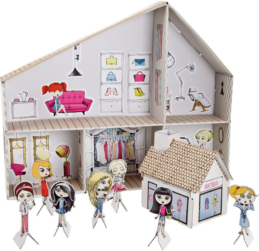 Która dziewczynka nie chciałaby mieć własnego salonu piękności i butiku? Przecież to miejsce zarezerwowane dla dorosłych, owiane tajemnicą i magią;-) Oto salon dla małych dam, które chciałyby spróbować zabawy we właściciela lub klientkę salonu piękności. Dla wybrednych klientek przygotowano również butik tuż obok, gdzie można zakupić niezbędne akcesoria dla uzupełnienia całości. Taka zabawka to również zabawka edukacyjna, która uczy nie tylko kreatywnego dekorowania, ale i ról społecznych, obejścia w towarzystwie. To świetna zabawka również do zabawy dla kilku dzieci. W skład kartonu wchodzą: -kartonowy salon piękności z kolorowym nadrukiem z zewnątrz -7 figurek -butik - mniejszy domek z kartonu -naklejki do obklejenia 5 pomieszczeń Zestaw dostarczy kreatywnej zabawy już od momentu jego składania. Prosta instrukcja obrazkowa umieszczona jest na opakowaniu. W środku pomieszczenia można obkleić lub pokolorować według własnego pomysłu. Wiek: 3+ Wymiary: 54 x 43 x 10cm