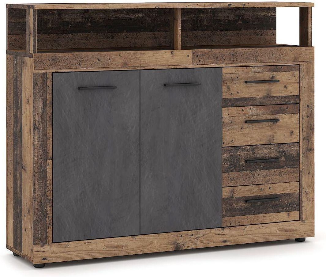 Pojemna komoda z szufladami, półkami i drzwiami do salonu,przedpokoju old wood ciemny - antracyt 119,5 cm, plastikowe nogi i uchwyty, czarne uchwyty Komoda Luna Midi old wood ciemny - antracyt - nowoczesny akcent w Twoim salonie Przedstawiamy naszą elegancką komodę Luna Midi, idealną do każdego …
