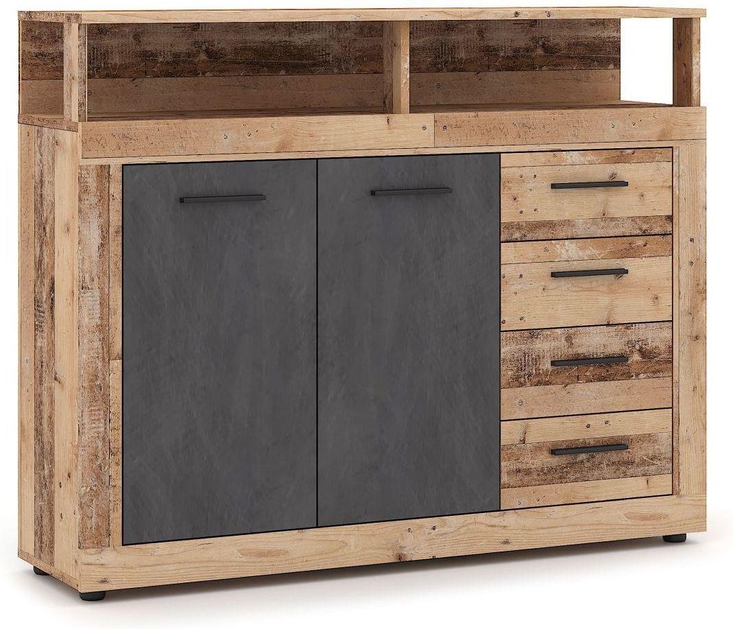 Pojemna komoda z szufladami, półkami i drzwiami do salonu,przedpokoju old wood jasny - antracyt 119,5 cm, plastikowe nogi i uchwyty, czarne uchwyty Komoda Luna Midi old wood jasny - antracyt - nowoczesny akcent w Twoim salonie Przedstawiamy naszą elegancką komodę Luna Midi, idealną do każdego …