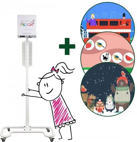 Zestaw SmartFloor Move Najnowszy zestaw SmartFloor Move z zamontowanym na statywie zestawem głośnikowym to dodatkowe wzmocnienie dźwięku w aplikacjach, przydatne zwłaszcza w dużych pomieszczeniach jak sala gimnastyczna, sala lekcyjna, kids zone w galerii handlowej czy bawialnia, gdzie wiele dzieci bawi się jednocześnie. Z pakietem „Red Bus” przenieś się na chwilę do Wielkiej Brytanii i udoskonal swój język angielski! Zagraj wraz z Królową Elżbietą i jej psem Sherrym w koło fortuny, odgadnij znaczenie angielskich zwrotów i odbuduj najsłynniejszy most w Londynie. Zestaw „Mały matematyk” dedykowany jest dla dzieci w wieku od 6 do 8 lat. Znajdują się tam łamigłówki matematyczne związane z dodawaniem, odejmowaniem, mnożeniem i dzieleniem w zakresie do 100, sortowaniem, wyborem właściwych lub niepasujących elementów. W pakiecie „Zimowa Ekipa” znajdziesz siedem różnych zabaw z świąteczno-zimowym akcentem. Kolorowanki, łapanie płatków śniegu, odśnieżanie obrazków czy ubieranie zwierzaków, to tylko niektóre z dostępnych atrakcji. Zestaw zawiera: 1x SmartFloor Mobile Audio aż 4 pakiety aplikacji na start: Mali Odkrywcy, W krainie kolorów, Rusz głową i Kulkowo (prawie 300 gier i kart pracy) 1x pakiet aplikacji „Red Bus” 1 x pakiet aplikacji „Mały Matematyk” 1 x pakiet aplikacji „Zimowa Ekipa”