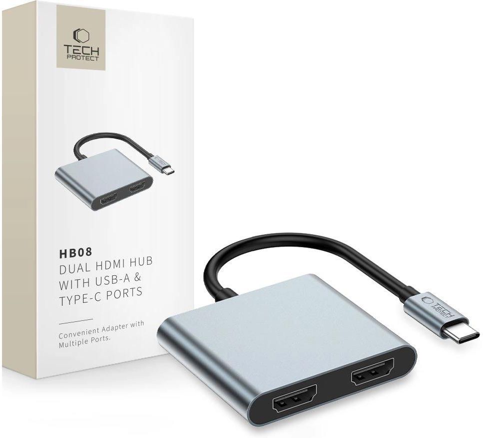 Tech-Protect HB08 to kompaktowe i wszechstronne akcesorium, które znacząco rozszerza możliwości urządzeń wyposażonych w port USB-C. Adapter oferuje dwa wyjścia HDMI umożliwiające jednoczesne podłączenie nawet dwóch monitorów, jedno złącze USB-A 3.0 przeznaczone do transmisji danych oraz port USB-C …