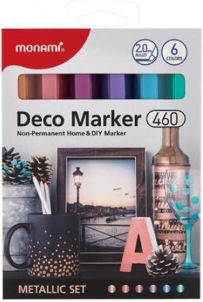 Markery Akrylowe Dekoracyjne Deco Marker B 460 6 Kolorów Metaliczne Monami Markery akrylowe Deco Marker B 460 Monami. Zestaw 6 nasyconych kolorów idealnych do dekoracji na powierzchniach tj. papier, metal, szkło, drewno. Przed użyciem należy wstrząsnąć markerem i kilka razy docisnąć końcówkę do …