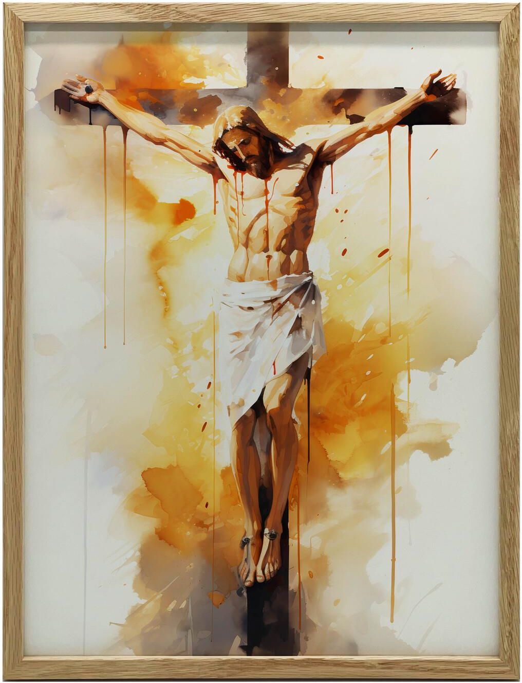 "Miłość na Krzyżu" to niezwykły plakat, który ukazuje Jezusa na krzyżu, stworzony przy użyciu subtelnych technik akwarelowych. Jego delikatna kolorystyka oraz płynne przejścia barw nadają tej scenie głębię i emocjonalny ładunek, oddając dramatyzm oraz miłość w obliczu cierpienia. Akwarelowe detale wprowadzają do obrazu elementy subtelności, co sprawia, że staje się on nie tylko estetycznym dziełem, lecz także głębokim, refleksyjnym przedstawieniem wartości duchowych. Ten plakat doskonale nadaje się do wnętrz, które chcą wyrazić duchowe przesłanie i znaczenie męki oraz miłości. Udekoruj swoje otoczenie tym unikalnym dziełem, aby każdego dnia cieszyć się jego głębią przesłania i artystycznym urokiem.