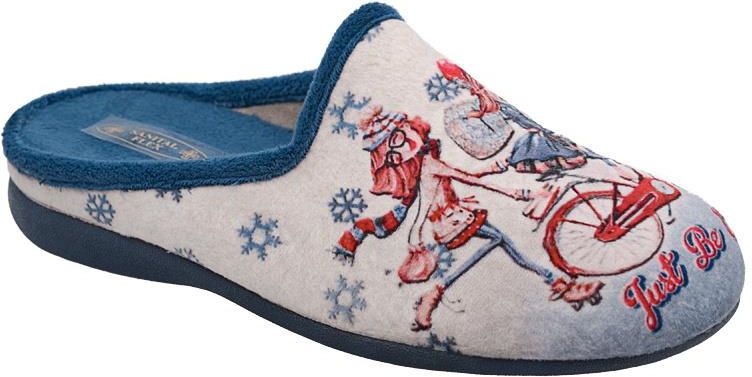 Kapcie SANITAL FLEX 7900-12 H Azul Barca Just Be Cool Niebieskie Beżowe Pantofle domowe Ciapy zdrowotne Biłgoraj