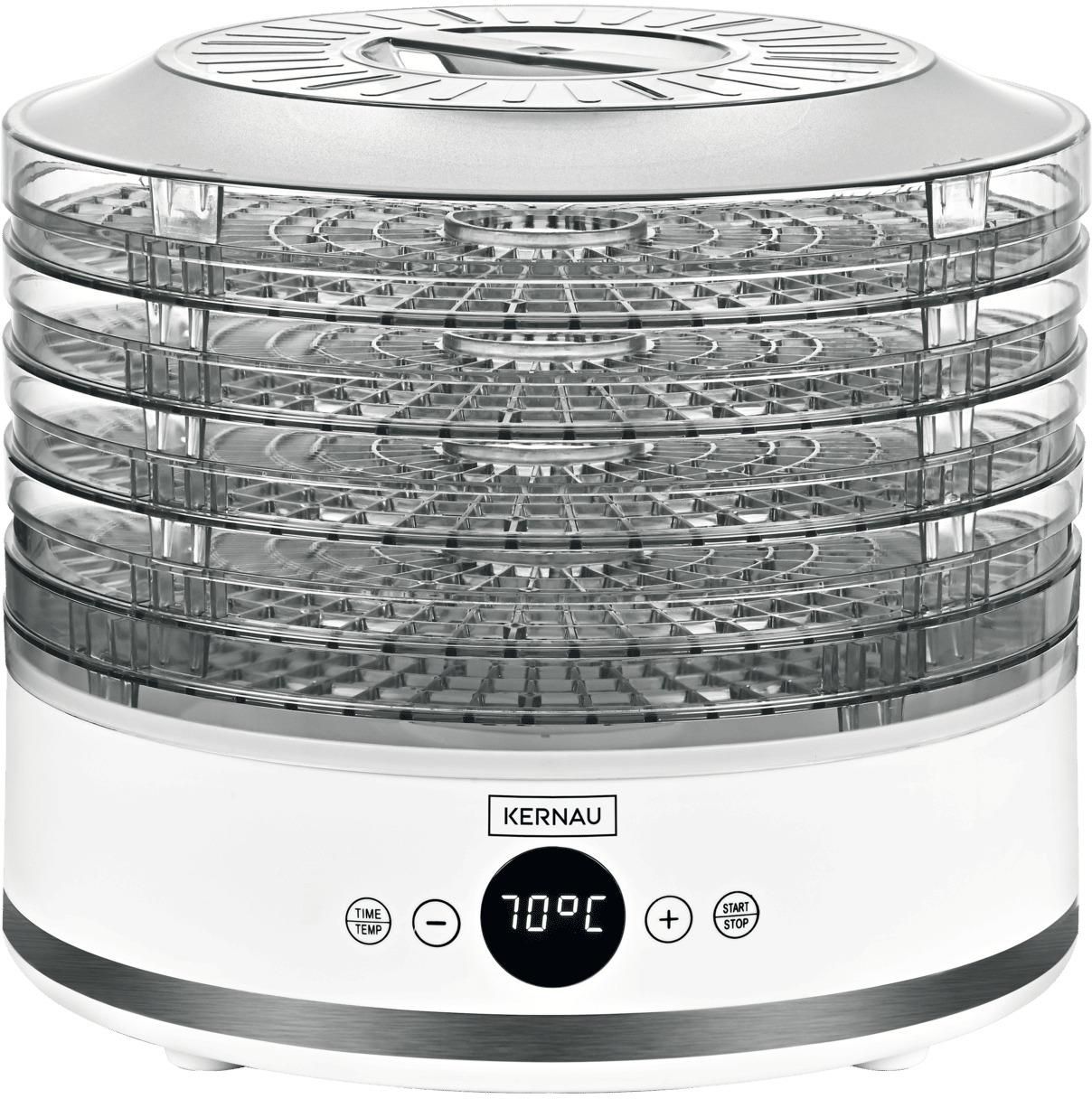 SUSZARKA DO ŻYWNOŚCI KERNAU KSFD 355 Dane techniczne Pojemność: 3,7 (7,1) l Moc: 320-380W Sterowanie dotykowe 5 tac Wysokość tacy: 13-25 mm Średnica tacy: 270 mm Zakres temperatur: 35 - 70 stC Timer: 0,5-48 godzx Włącznik z podświetleniem ---------------------------------- Wymiary Wysokość: 218 (283) mm Szerokość: 295 mm Głębokość: 295 mm Waga: 2,06 kg Długość przewodu: 77 cm Suszarka do żywności KERNAU KSFD 355 – precyzja suszenia i nowoczesne sterowanie dotykowe Zadbaj o zdrową dietę i pełną kontrolę nad procesem konserwacji żywności dzięki tej nowoczesnej suszarce do żywności. Wyposażona w intuicyjny dotykowy panel sterowania, oferuje aż 5 regulowanych tac o wysokości 13–25 mm oraz pojemność całkowitą 7,1 litra (3,7 l w trybie kompaktowym). To praktyczne i estetyczne urządzenie idealnie sprawdzi się podczas suszenia owoców, warzyw, grzybów, ziół, a także przy przygotowywaniu domowego musli czy zdrowych chipsów – bez konserwantów i dodatku cukru. Zaawansowana technologia suszenia Zakres temperatury od 35℃ do 70℃ pozwala precyzyjnie dostosować warunki do rodzaju suszonych produktów – niższe temperatury dla ziół i miękkich owoców, wyższe dla grzybów i warzyw korzeniowych. Timer z ustawieniem od 30 minut do aż 48 godzin gwarantuje pełną kontrolę nad czasem suszenia, co przekłada się na zachowanie naturalnego smaku, koloru i wartości odżywczych. Wygoda i intuicyjne użytkowanie Obsługa suszarki jest niezwykle prosta dzięki dotykowemu panelowi sterowania, który umożliwia szybkie i precyzyjne ustawienie temperatury i czasu. Równomierna cyrkulacja powietrza zapewnia jednakowy poziom suszenia na każdej tacce, eliminując konieczność ich przekładania. To idealne rozwiązanie dla osób, które cenią wygodę i efektywność w kuchni. Funkcjonalność i kompaktowy design Możliwość regulacji wysokości tac od 13 do 25 mm sprawia, że urządzenie bez problemu pomieści zarówno cienkie plasterki jabłek, jak i grubsze kawałki warzyw, owoców czy mięsa. Pojemność do 7,1 l sprawia, że suszarka doskonale sprawdzi się nawet przy większych porcjach. Jej nowoczesny, kompaktowy design harmonijnie wpisuje się w wystrój każdej kuchni, a łatwość czyszczenia i przechowywania podnosi komfort codziennego użytkowania. 5 TAC Suszarka wyposażona jest w 5 tac o wysokości regulowanej od 13 do 25 mm, co pozwala dopasować przestrzeń do różnych rodzajów żywności. To elastyczne rozwiązanie sprawdzi się zarówno przy cienkich plastrach, jak i drobniejszych produktach. 1. SUSZONE GRZYBY Z suszarką do żywności KSFD 355 bez trudu przygotujesz domowe zapasy grzybów do zupy, uszek czy sosów. Samodzielne suszenie pozwala zachować ich pełnię smaku i aromatu, a przy tym znacząco ograniczyć wydatki – gotowe grzyby w sklepach są znacznie droższe. 2. REGULACJA TEMPERATURY Model KSFD 355 oferuje regulację temperatury w zakresie od 35 do 70℃, co pozwala precyzyjnie dobrać warunki do rodzaju suszonych produktów. Dzięki temu zachowujesz maksimum smaku i wartości odżywczych. 3. DOMOWE MUSLI Model KSFD 355 umożliwia suszenie ulubionych owoców – od truskawek i jabłek po borówki i banany – które świetnie uzupełnią domowe musli lub owsianki. Dzięki temu masz pełną kontrolę nad składem swojego śniadania i możesz cieszyć się naturalnym smakiem bez zbędnych dodatków.