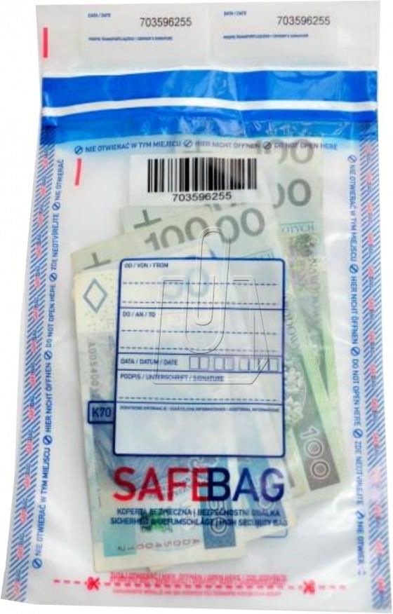 Koperta bezpieczna SafeBag K70 przeźroczysta Koperta bezpieczna SafeBag przeźroczysta, w formacie K70 i rozmiarze 155x245+35mm wyprodukowana jest z mocnej, trójwarstwowej folii LDPE o grubości 70 mc. Folia gwarantuje odporność na warunki atmosferyczne. Koperta posiada boczny nadruk na zgrzewie. Dzięki niemu widoczne są próby nieprawidłowego otwarcia. Na kopercie widnieje kod kreskowy, który umożliwia śledzenie przesyłki. Oprócz tego każda koperta ma niepowtarzalny numer umieszczony w kilku miejscach, miejsce na podpisy i daty oraz odrywalne odcinki przewozowe. Koperta SafeBag gwarantuje wysoką jakość bezpieczeństwa przesyłki dzięki systemowi zabezpieczenia przed otwarciem przez osoby trzecie. Otwarcie koperty jest nieodwracalne. Każde odklejenie taśmy w sposób mechaniczny, chemiczny lub termiczny pozostawia odbarwienia lub deformacje. Dzięki temu w kopercie bezpiecznej SafeBag można przesyłać wartościowe przedmioty, wpłaty bankowe czy tajne dokumenty.
