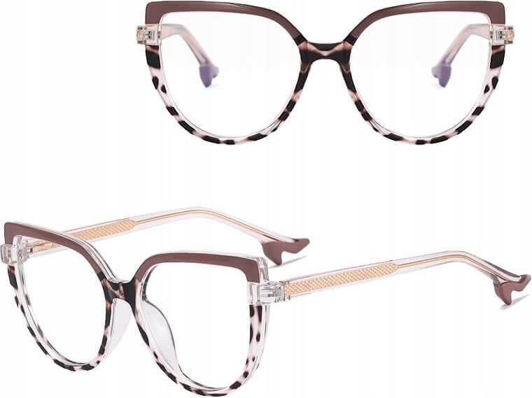 DAMSKIE OKULARY KOCIE OCZY NA OBCASIE ZERÓWKI Z FILTREM BLUE LIGHT i ANTYREFLEKS DO KOMPUTERA 25159E w wersji Premium STYLION kolor oprawki brązowy + panterka oprawka kocie oczy z idealnym podkreśleniem w postaci zausznika zakończonego damskim butem na obcasie okulary do komputera, telefonu, …
