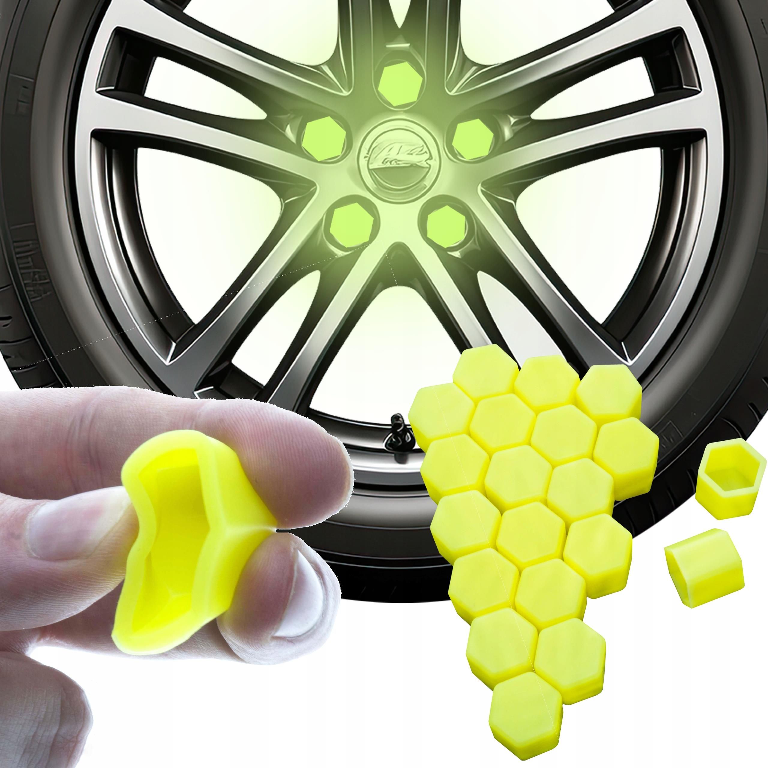 ZAŚLEPKI NAKŁADKI KAPSLE NA ŚRUBY 17mm ŚWIECĄCE W CIEMNOŚCI ŻÓŁTE – Estetyka i Funkcjonalność w Jednym! Dodaj unikalnego charakteru swojemu samochodowi z zaślepkami na śruby 17mm, które nie tylko zabezpieczą śruby, ale także świecą w ciemności! Dzięki ich żółtej poświacie Twój pojazd wyróżni się na drodze, zachowując elegancki i nowoczesny wygląd zarówno za dnia, jak i po zmroku. Co znajdziesz w zestawie? ✅ 20 sztuk świecących w ciemności zaślepek na śruby o średnicy 17mm Dlaczego warto wybrać te zaślepki? ✅ Świecące w ciemności – Te wyjątkowe nakładki świecą na niebiesko, dodając pojazdowi niepowtarzalnego, futurystycznego wyglądu nocą. ✅ Idealne dopasowanie i elastyczność – Nakładki o średnicy 19mm doskonale pasują na standardowe śruby i nakrętki. Dzięki silikonowemu, elastycznemu materiałowi, nakładki łatwo dopasowują się do kształtu śrub, co zapewnia pewne i trwałe mocowanie. ✅ Trwałe i odporne – Wykonane z wysokiej jakości silikonu, te zaślepki są nie tylko elastyczne, ale również odporne na warunki atmosferyczne, co zapewnia długotrwałą ochronę przed korozją i uszkodzeniami. Korzyści z wyboru naszych zaślepek Estetyka i funkcjonalność – Świecące w ciemności zaślepki dodadzą Twojemu samochodowi niepowtarzalny styl, jednocześnie chroniąc śruby przed zanieczyszczeniami i rdzą. Łatwy montaż – Silikonowe nakładki są elastyczne i łatwe do zamocowania, co sprawia, że instalacja jest szybka i bezproblemowa. Uniwersalność – Pasują do większości samochodów osobowych, zapewniając szerokie możliwości zastosowania. Zaślepki nakładki kapsle na śruby 17mm świecące w ciemności żółte to doskonały wybór dla każdego, kto chce dodać swojemu pojazdowi nowoczesnego, eleganckiego wyglądu i zadbać o funkcjonalną ochronę śrub. Podkreśl styl swojego auta, zarówno za dnia, jak i w nocy! Specyfikacja techniczna Kolor: Żółty Średnica: 17 mm Materiał: Silikon Ilość: 20 sztuk Wysokość: 20 mm