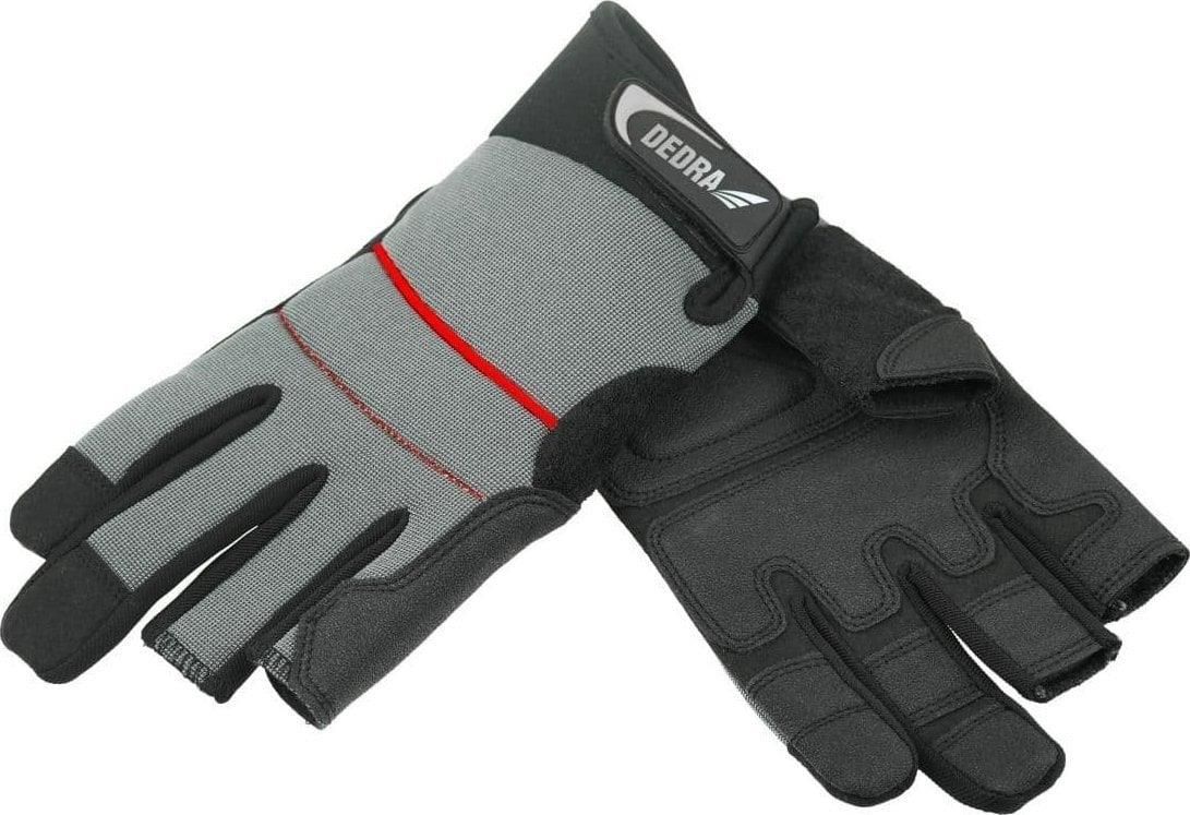Odkryj niezawodne rękawice robocze ze skóry syntetycznej DEDRA BH1014R10 z wypełnieniem z pianki EVA, dostępne w rozmiarze 10 - idealne narzędzie dla Twojej ochrony podczas pracy! Czy szukasz rękawic, które zapewnią Ci zarówno doskonałą ochronę, jak i wygodę? Rękawice DEDRA BH1014R10 są stworzone z myślą o Tobie! Wykonane z wysokiej jakości skóry syntetycznej, te rękawice są wytrzymałe i odporne na uszkodzenia, zapewniając niezawodną ochronę Twoich dłoni podczas wykonywania różnych zadań. Bez względu na to, czy pracujesz w warsztacie, ogrodzie czy w innych warunkach, gdzie wymagana jest ochrona rąk, rękawice DEDRA BH1014R09 będą Twoim niezastąpionym partnerem. Wypełnienie z pianki EVA dodaje dodatkowej ochrony i wygody. Ta elastyczna pianka doskonale amortyzuje wstrząsy i uderzenia, minimalizując narażenie Twoich dłoni na niebezpieczeństwa i zmęczenie. Możesz wykonywać swoje zadania z większą precyzją i komfortem, dzięki odpowiedniemu wsparciu oferowanemu przez rękawice DEDRA BH1014R10. Rozmiar 10 zapewnia doskonałe dopasowanie do Twoich dłoni, co przekłada się na wygodę i swobodę ruchu. Bez względu na to, czy wykonujesz precyzyjne zadania czy pracujesz z narzędziami, te rękawice doskonale przylegają i pozostają na swoim miejscu, dając Ci poczucie pewności i kontroli. Podnieś jakość swojej pracy i zadbaj o ochronę swoich dłoni. Zamów rękawice robocze ze skóry syntetycznej DEDRA BH1014R10 już dziś! To inwestycja w Twoje bezpieczeństwo i wygodę, która przyniesie Ci zadowolenie na każdym kroku. Niezwłocznie wybierz rękawice DEDRA BH1014R10, które zapewnią Ci niezawodną ochronę i komfort podczas wykonywania zadań. Twoje dłonie zasługują na to najlepsze! Rękawice robocze model BH1014R10 to idealny wybór do ochrony Twoich dłoni, przy wykonywaniu różnorodnych prac wymagających precyzji i dobrego czucia, jak konserwacja i naprawa, montaż, obsługa sprzętu czy majsterkowanie. Wierzchnia część rękawicy wykonana jest z elastycznego spandexu, co zapewnia idealne dopasowanie, a brak końcówek 3 palców zapewnia lepsze czucie dłoni. Rękawice posiadają wzmocnienia z wypełnieniem z pianki EVA - wzmocniona poduszka na części chwytnej chroni przed odciskami i wibracjami, co sprawdzi się podczas prac z narzędziami udarowymi i elektrycznymi. Cechy: Brak końcówek 3 palców (kciuk, palec wskazujący i serdeczny) zapewnia lepsze czucie dłoni Skóra syntetyczna z wytrzymałym teksturowanym wzmocnieniem PVC Wzmocnienia z wypełnieniem z pianki EVA Specjalny materiał na kciuku - zbliżony do froty, do otarcia potu Elastyczny mankiet na rzep Dane Techniczne: Rozmiar: 10 Kolor: wierzch - szary / spód - czarny Wyprodukowane zgodnie z normą EN ISO 12420