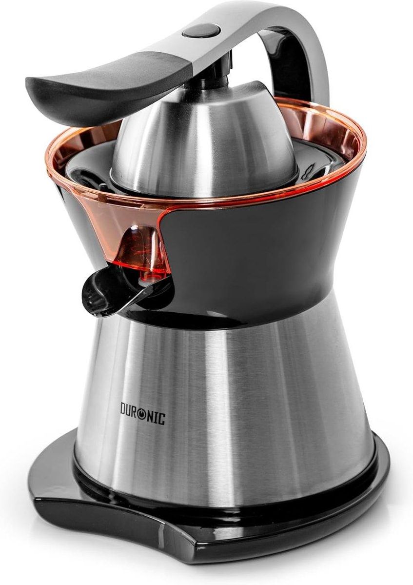 Elektryczna Wyciskarka do Cytrusów Duronic JE304 Marka: Duronic Kolor: Srebrny Materiał: Stal nierdzewna Pojemność: 400 ml Moc: 300 W Waga produktu: 2 kg Proste źródło witamin Sokowirówka Duronic JE307 pomaga w spożywaniu dużej ilości witamin i składników odżywczych w skoncentrowanej formie. Właściwości owoców cytrusowych są niezliczone. Owoce cytrusowe to owoce o wyższej zawartości witaminy C, która jest nie tylko ważna dla prawidłowego rozwoju i wzrostu, ale również ma duży pozytywny wpływ na naszą skórę, dzięki czemu wygląda zdrowiej i jaśniej, a pojawienie się witaminy C opóźnia straszne zmarszczki. Owoce cytrusowe, takie jak pomarańcza, cytryna lub grejpfrut są również bogate w błonnik. Dlatego regularne spożywanie tego rodzaju pożywienia przyczynia się do naturalnej poprawy mikroflory jelitowej. Kolejnym tradycyjnym zastosowaniem owoców cytrusowych jest zapobieganie i leczenie grypy i przeziębienia. A dla tych, którzy nie są miłośnikami mleka, mogą dostarczyć niezbędny wapń dzięki temu suplementowi diety, aby wzmocnić swoje kości. Ta wyciskarka do soków przetwarza szeroką gamę owoców cytrusowych, takich jak np. słodka pomarańcza, gorzka pomarańcza, Walencja, pomarańcza krwista, grejpfrut, cytryna, limonka, mandarynka, tangelo, klementyna, bergamotka itp. Stabilizacja owoców Urządzenie to wyposażone jest w zacisk, który pozwala na utrzymanie owoców na miejscu, zapewniając sprawne i szybkie wyciskanie soku. Ergonomiczny uchwyt Wyciskarka do cytrusów z dźwignią ma wygodny uchwyt, który pozwala na dociśnięcie owocu, aby łatwiej wycisnąć sok. Elektryczna wyciskarka do cytrusów umożliwia szybkie pozyskanie soku z pomarańczy, limonki, grapefruita. Niezależnie czy chcesz szybko się orzeźwić szklanką zimnego soku, czy potrzebujesz odrobiny soku jako dodatek do drinka czy przepisu kulinarnego ta wyciskarka okaże się niezbędnym pomocnikiem! Mały stożek Mały stożek idealnie wyciśnie sok z limonki, cytryny, mandarynki itp. Duży stożek Duży stożek to idealna wyciskarka do pomarańczy, grapefruita czy innych dużych owoców cytrusowych. Łatwe czyszczenie Indywidualne części mogą być z łatwością zdemontowane i umyte w zmywarce. Regulowany filtr Otwórz lub zamknij filtr, aby regulować ilość pulpy jaka zostanie przelana do szklanki. Lejek góra- dół Regulacja lejka odpływowego daje możliwość regulacji przepływu soku i zmniejszenia kapania po zakończeniu wyciskana. Antypoślizgowe podkładki Antypoślizgowe podkładki stabilizują urządzenie na blacie. Wypróbuj elektryczną wyciskarkę do cytrusów z dźwignią JE307 – wszechstronne urządzenie do świeżych soków pełnych wartości odżywczych! Dzięki mocy 300 watów bez trudu wyciska sok z cytrusów. Kabel o długości 0,85 metra zapewnia elastyczność. Idealna do wyciskania pomarańczy, owoców i limonek.