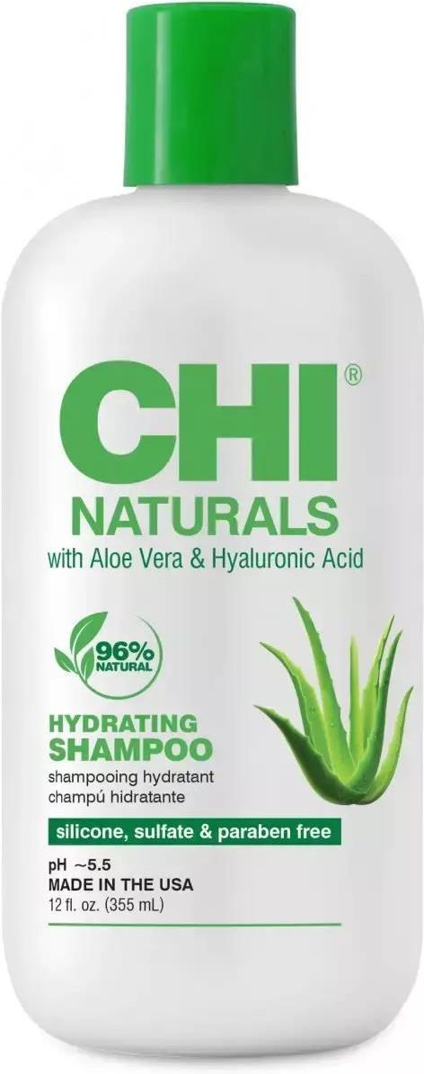 CHI Naturals with Aloe Vera Hydrating Shampoo 340 ml Szampon nawilżający z aloesem i kwasem hialuronowym Szampon intensywnie nawilża zniszczone pasma włosów, dzięki zastosowaniu aloesu i kwasu hialuronowego. Pomaga zmniejszyć przesuszenie i podatność na uszkodzenia, zwiększając przy tym połysk. …