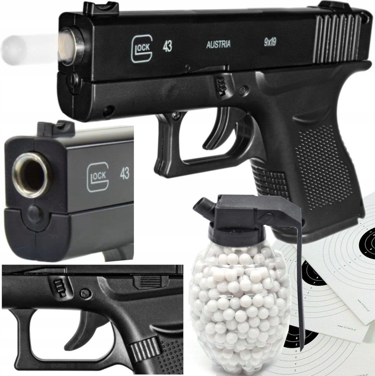 Glock 43 Pistolet Metalowy Na Kulki 6Mm Replika Asg + Granat 800Szt. Kulek Biskupiec