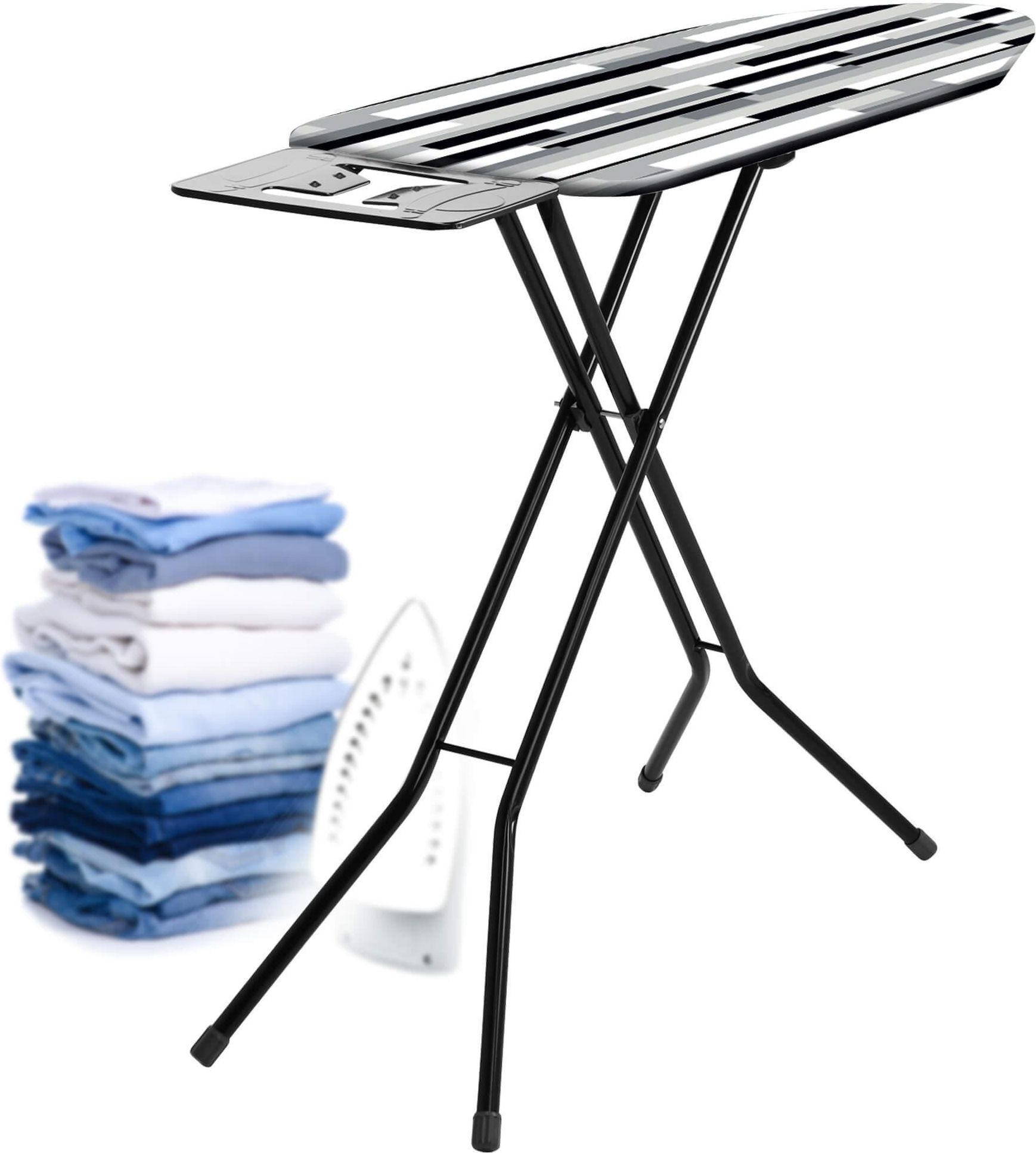DESKA DO PRASOWANIA UCHWYT NA ŻELAZKO 120x38cm Szukasz praktycznej i wytrzymałej deski do prasowania? Przedmiotu, który sprawdzi się do wyprasowania każdego elementu garderoby? Sięgnij po naszą solidną deskę! Dzięki dużej powierzchni blatu, deska usprawni prasowanie koszul, sukienek, podkoszulków i wielu innych ubrań. A jej funkcjonalne rozwiązania, takie jak wbudowana podstawka pod żelazko i zdejmowany pokrowiec – ułatwią codziennie użytkowanie! Co więcej, dzięki wykorzystaniu trwałych materiałów deska będzie służyć w Twoim domu przez długi czas. Sprawdź, dlaczego warto wyposażyć się w naszą deskę! Stabilna deska do prasowania ubrań niezbędna w każdym domu ✅PRAKTYCZNA – deska do prasowania posiada blat wykonany z metalowej siatki, która doskonale przepuszcza parę wodną. Jej powierzchnia blatu wynosi 120x38cm, dlatego pozwoli na dokładnie wyprasowanie większych i mniejszych elementów garderoby. ✅REGULOWANA WYSOKOŚĆ – solidna deska do prasowania wyposażona jest w wytrzymały stelaż z płynną regulacją wysokości. Dzięki temu możesz swobodnie dostosować przedmiot do swojego wzrostu i znacząco ułatwić sobie prasowanie. ✅STABILNA – stalowe nogi deski posiadają na zakończeniach nakładki antypoślizgowe, które gwarantują jej stabilność. Pozwala to na większy komfort podczas prasowania, bez obaw o przesuwanie i chwianie się deski. ✔️SPECYFIKACJA: Deska do prasowania Materiał: stal, blat z chromowanej siatki Wymiary blatu: 120 x 38 x 2 cm Wymiary deski po rozłożeniu: 146 x 38 x 92 cm Wymiary deski po złożeniu: 158 x 38 x 6 cm Regulacja wysokości: 66 - 92 cm Kolor: czarny, biały, szary Waga: 3,5 kg ✅UWAGA: Wzór pokrowca może różnić się od tego w aukcji. Pokrowce są wysyłane losowo. Deska do prasowania z uchwytem na żelazko, które zapewnia wygodę ✅FUNKCJONALNA – stabilna deska wyposażona jest w zdejmowany pokrowiec z bawełny i poliestru, który z łatwością utrzymasz w czystości. W dodatku posiada podstawkę, która daje możliwość odstawiania żelazka w bezpieczne i wygodne miejsce. ✅ŁATWA DO CZYSZCZENIA - deska posiada pokrowiec wykonany z dwóch warstw – tkaniny (50% bawełny, 50 % poliestru) i podszycia z pianki, który można swobodnie zdjąć i wyprać w razie potrzeby. ✅WYGODNA – deska do prasowania ze względu na swoje kompaktowe wymiary jest łatwa do składania i rozkładania. Na dodatek niewiele waży, dlatego nie będziesz mieć problemu z jej przenoszeniem i przechowywaniem. Nie ma co zwlekać – sięgnij po solidną deskę, aby ułatwić sobie prasowanie!