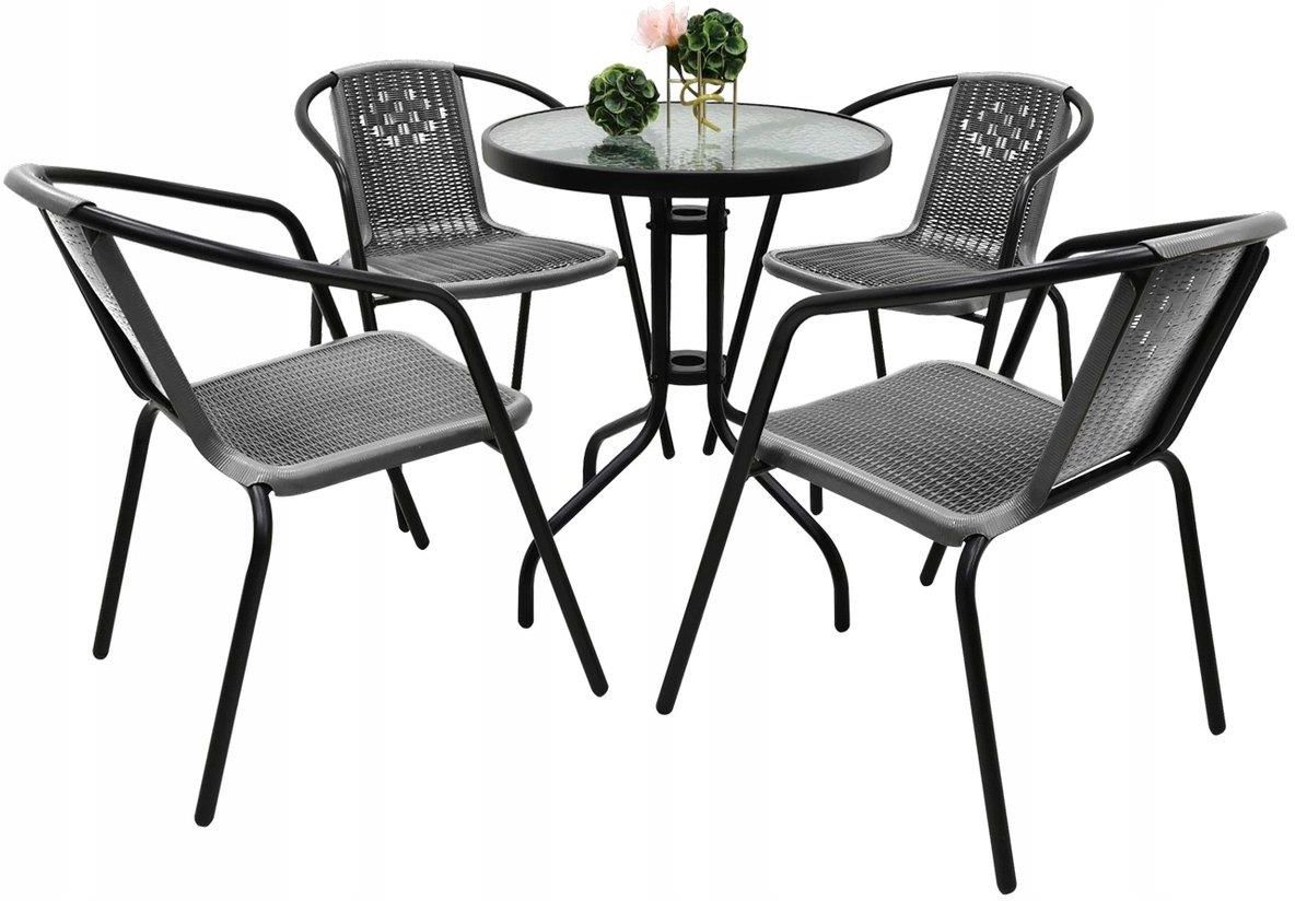 Kontrast Zestaw Mebli Ogrodowych Na Balkon Taras Bergamo Stół Fi60 + 4X Krzesło Szary Biskupiec
