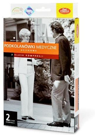 Podkolanówki uciskowe CLASSIC CCL2 marki Pani Teresa Medica to doskonały wybór dla osób potrzebujących skutecznej terapii uciskowej. Stworzone z myślą o komforcie i zdrowiu, idealnie sprawdzają się w profilaktyce i leczeniu przewlekłej niewydolności żylnej, żylaków oraz obrzęków kończyn dolnych. Klasa kompresji CCL2 (23-32 mmHg) zapewnia średni stopień ucisku, który poprawia krążenie krwi, zmniejsza ból i uczucie zmęczenia nóg. Podkolanówki CLASSIC wyróżniają się wysoką jakością wykonania oraz wytrzymałymi, oddychającymi materiałami, które gwarantują długotrwałe użytkowanie. Elastyczny ściągacz zapewnia stabilność bez nadmiernego ucisku, a anatomiczny kształt doskonale dopasowuje się do nóg, co zwiększa komfort noszenia przez cały dzień. Cechy: klasa kompresji CCL2 (23-32 mmHg) – optymalne wsparcie dla krążenia krwi. skuteczna profilaktyka i leczenie problemów żylnych, w tym żylaków i obrzęków. wysokiej jakości, oddychający materiał zapewniający komfort noszenia. anatomiczny krój i elastyczny ściągacz dla doskonałego dopasowania. polecane dla osób prowadzących siedzący tryb życia, długotrwale stojących oraz w podróży. Wskazania: noga obrzęknięta, bolesna, „ciężka” żylaki z towarzyszącymi obrzękami po przebytym zakrzepowym zapaleniu żył (przy obrzękach i bólach) przed- i pooperacyjna profilaktyka zakrzepowego zapalenia żył obrzęki po stłuczeniach, złamaniach i zwichnięciach słoniowacizna stóp i goleni po zagojeniu się niewielkich owrzodzeń żylakowych Przeciwwskazania: miażdżyca kończyn dolnych choroba Beürgera; tzw. stopa cukrzycowa. Dostępne kolory: Skład: Poliamid 78%, Elastan 22%