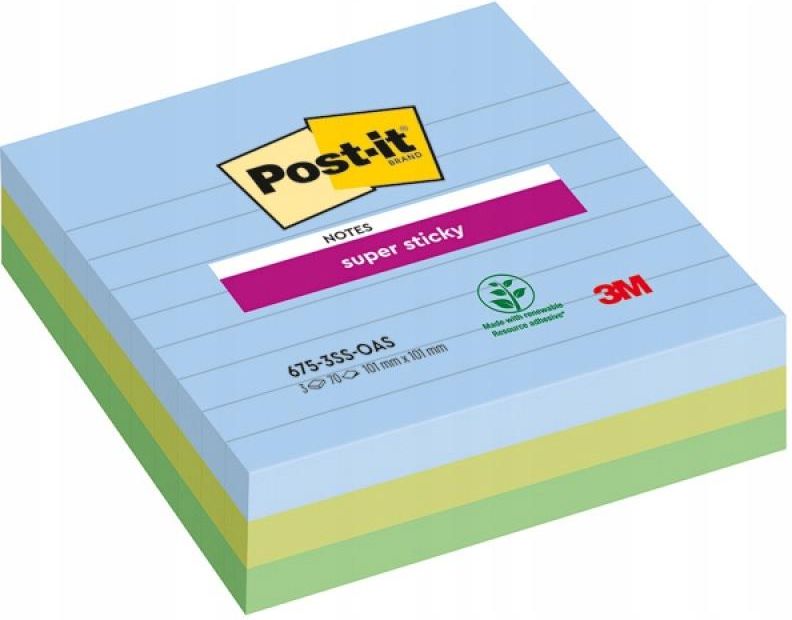 KARTECZKI SAMOPRZYLEPNE POST-IT® SUPER STICKY XL, OASIS, W LINIĘ, 101X101MM, 3X70 KART. Kolorowe karteczki samoprzylepne Post-it® Super Sticky XL to innowacyjne rozwiązanie na codzienne zarządzanie zadaniami i priorytetami. Dzięki kolorom świetnie się wyróżniają, dzięki Super Sticky trzymają się w …