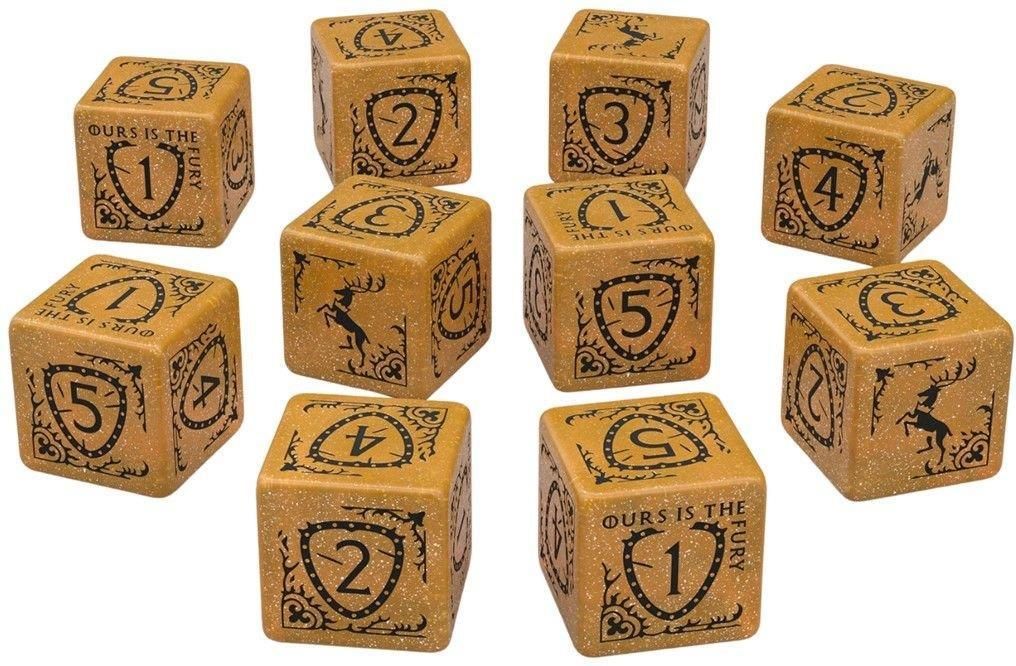 Zestaw dziesięciu sześciennych kości inspirowanych Domem Baratheonów to doskonały wybór dla graczy, którzy cenią siłę i honor. Każda z połyskujących, żółtych kości ozdobiona jest czarnym grawerem - na jednej ściance widnieje dumny jeleń w koronie, na drugiej słynne motto rodu: "Ours is the Fury". …