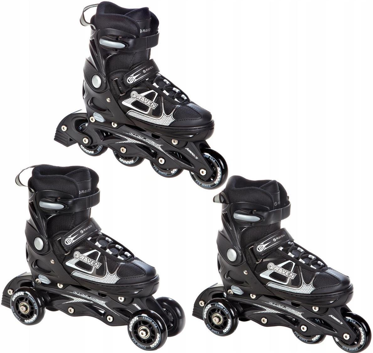 Rolko-Wrotki 3w1 RAVEN Spirit Black/White 40-43 (rozmiar regulowany 25,5cm - 28cm) Spirit to model rolek, dedykowany zarówno początkującym, jak i średniozaawansowanym użytkownikom oferujący to, z czego słynie marka RAVEN - doskonałą jakość materiałów, wyjątkową trwałość oraz wysoki komfort …