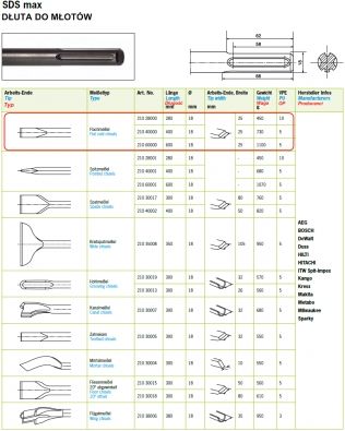 Rennsteig Dłuto sds-max płaskie 600x18mm 25mm blister 21060000SB Biskupiec