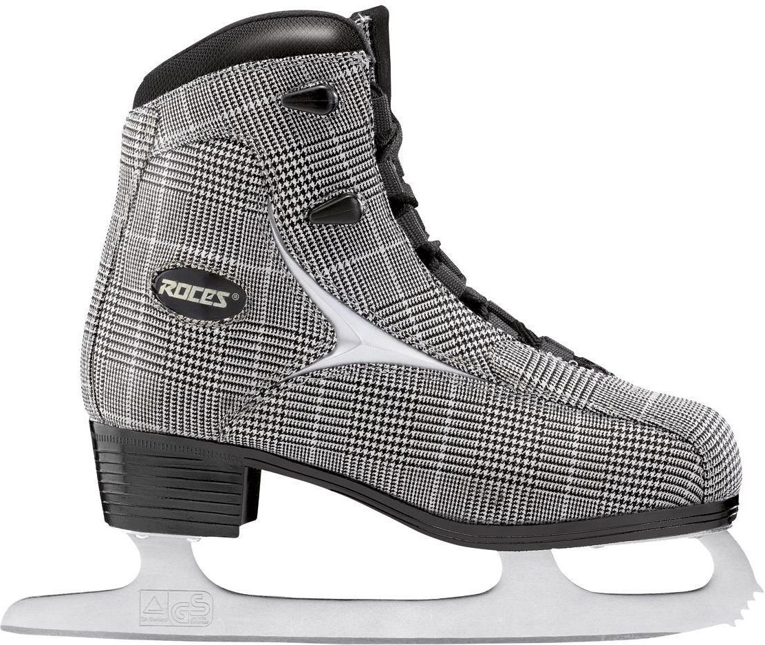 Łyżwy figurowe ROCES BRITS 450557 003 39 ŁYŻWY FIGUROWE ROCES BRITS czarno/białe 03 /450557 003 Właściwości Łyżwy figurowe BRITS to sprawdzona jakość gwarantowana przez renomowanego producenta - ROCES. Łyżwy charakteryzują się bardzo atrakcyjnym, nowoczesnym wyglądem oraz wygodą. But sznurowany w dolnej części poprzez pętle, w górnej przez haczyki. Wysokiej jakości materiały syntetyczne użyte przy produkcji buta zapewniają komfort. Dodatkowo, anatomiczna, docieplona wyściółka wewnątrz łyżwy zapobiega otarciom. Ostrze ze stali węglowej, wyjątkowo mocne, wstępne naostrzone.