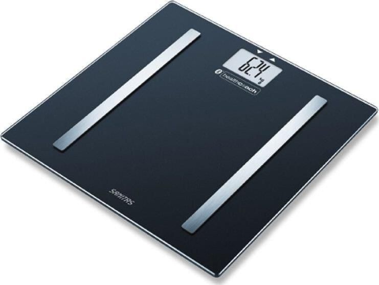 SANITAS SBF 72 DIAGNOSTYCZNA WAGA ŁAZIENKOWA BLUETOOTH Dzięki technologii Bluetooth waga może mierzyć dane ciała w domu i w podróży Transmisja danych Bluetooth po włączeniu wagi lub podczas pomiaru użytkownika Wyświetlacz LCD: wielkość cyfr 30 mm Nośność 180 kg Powierzchnia do stania wykonana ze szkła bezpiecznego: 30 x 30 cm Elektrody ze szczotkowanej stali nierdzewnej 5 poziomów aktywności Podstawowa przemiana materii i aktywność metaboliczna w kcal pamięci użytkownika z 30 miejscami na pomiary i automatycznym rozpoznawaniem użytkownika , alternatywnie za pomocą przycisków Automatyczne wyłączanie/szybki start/wskaźnik przeciążenia Dane fitness i wartości ciała w zasięgu wzroku, pomiar masy ciała, tkanki tłuszczowej, wody, masy mięśniowej, masy kości i kalorii, AMR/BMR i BMI Elegancka waga diagnostyczna o ponadczasowym wzornictwie i dwie elektrody ze szczotkowanej stali szlachetnej, prosty czarny wygląd do Twojej łazienki Inteligentna waga do pomiaru tkanki tłuszczowej z innowacyjną siecią z aplikacją Sanitas HealthCoach, aby uzyskać szczegółowe przegląd zapisanych wartości na Twoim smartfonie (proszę sprawdzić kompatybilność) Indywidualny pomiar dla 8 różnych użytkowników, z automatycznym rozpoznawaniem użytkownika, 5 poziomów aktywności do szczegółowego ustalania danych własnego ciała Możliwe użytkowanie również bez aplikacji: Dzięki bezpośredniemu startowi waga wskazuje prawidłową wagę, wartości analizy ciała są obliczane za pomocą standardowych parametrów i dlatego są mniej lub mniej niedokładne Szczegółowy opis produktu Obliczanie masy ciała, tkanki tłuszczowej, wody w organizmie, procentowej zawartości mięśni, masy kostnej, BMR, AMR, BMI Podziałka 0,1% w przypadku tkanki tłuszczowej , wody i tkanki mięśniowej 100g w przypadku masy ciała i kostnej Pełny zakres funkcji tylko z aplikacją Health Coach W zestawie Waga Bateria, Instrukcja w języku polskim