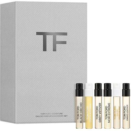 Odkryj ponadczasowe zapachy Signature o nowoczesnym charakterze: • Black Orchid – kwiatowy zapach bursztynu • Noir Extreme – zmysłowy drzewny zapach bursztynu • Ombré Leather – ciepły, kwiatowy zapach skóry • Eau de Soleil Blanc – słoneczny zapach bursztynu • Oud Minérale – drzewno-morski zapach • Grey Vetiver – drzewny zapach z rodziny fougère Zestaw upominkowy Signature Mini Discovery Set zawiera sześć zapachów Signature, każdy o pojemności 1.5 ml.