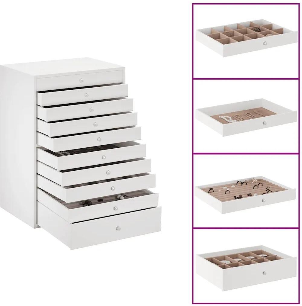 vidaXL Pudełko Na Biżuterię 10 Warstwowe Z Uchwytami Na Zegarki Białe (4103566) Biskupiec