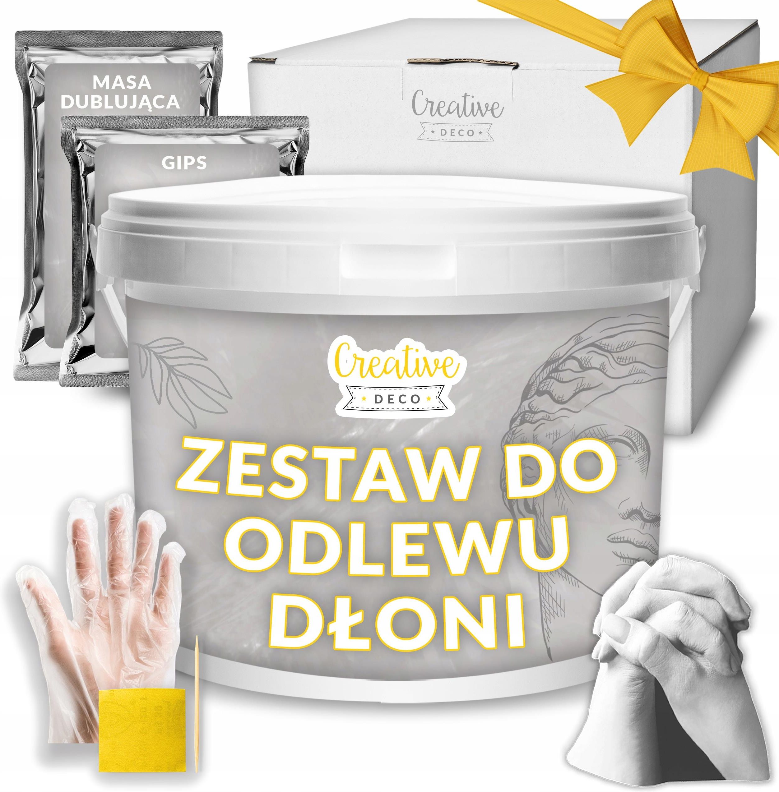 Zestaw do odlewów dłoni 1kg Opis produktu Gips 1000g i masa dublująca 450g Zestaw zawiera: Pojemnik do odlewania Patyczek Papier ścierny Rękawiczka ZASTOSOWANIE – Zestaw do odlewu dłoni dla dorosłych znajduje szerokie zastosowanie w tworzeniu pamiątkowych odlewów, które uchwycą wyjątkowe momenty, takie jak rocznice, śluby czy przyjaźń. Doskonale nadaje się do odlewania detali dłoni, oferując możliwość stworzenia trwałej i unikalnej dekoracji lub prezentu. WYSOKA JAKOŚĆ – Nasz zestaw składa się z 1000 g gipsu oraz 500 g masy dublującej, co gwarantuje precyzyjne odwzorowanie każdego detalu, w tym linii papilarnych. Dzięki załączonym akcesoriom, jak rękawiczka, patyczek oraz papierek ścierny, proces tworzenia odlewu jest łatwy i przyjemny, a efekt końcowy niezwykle trwały. Po całkowitym wyschnięciu odlew można szlifować i dekorować. ŁATWY W UŻYCIU – Aby wykonać odlew, należy dokładnie wymieszać masę dublującą z wodą, wlać ją do formy i zanurzyć dłoń. Po stężeniu masy, formę wypełnia się gipsem, który twardnieje w ciągu kilku godzin. Dzięki dołączonym instrukcjom krok po kroku, proces tworzenia odlewu jest prosty nawet dla osób, które nie mają doświadczenia. IDEALNY POMYSŁ NA PREZENT – Zestaw do odlewu dłoni to doskonały pomysł na wyjątkowy i spersonalizowany prezent dla bliskich. Sprawdzi się jako oryginalny podarunek na różne okazje, pozwalając na stworzenie niepowtarzalnej pamiątki, która będzie cieszyć przez długie lata. WYPRODUKOWANA W POLSCE - Martwisz się, że twoje produkty artystyczne nie pochodzą z wiarygodnego źródła? Wybierz markę Creative Deco - wszystkie składniki naszych produktów pochodzą z UE, co gwarantuje, że spełniają wszystkie normy prawne zarówno lokalne jak i krajowe. ODKRYJ MARKĘ CREATIVE DECO - Odkryj szeroką gamę produktów artystycznych marki Creative Deco, akcesoriów do dekoracji i różnych przedmiotów przydatnych do decoupage'u. Rozwiń skrzydła swojej wyobraźni, tworząc swoje własne dzieła sztuki.