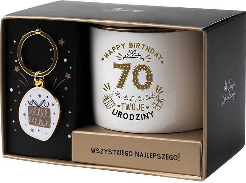 Be Happy Zestaw Jubileuszowy Na Urodziny 70 Złoty 2Szt. 300Ml Urodziny to wyjątkowy czas w życiu każdego z nas, a 70. jubileusz zasługuje na szczególne uhonorowanie. Zestaw od Be-Happy Gifts to doskonała propozycja na tę okazję. Dzięki starannie zaprojektowanym elementom, takim jak elegancki ceramiczny kubek oraz stylowy brelok, produkt nie tylko cieszy oko, ale także wnosi radość i wzruszenie. Przygotowany z myślą o osobach obchodzących swoje 70. urodziny, zestaw ten jest idealnym sposobem na wyrażenie uczuć towarzyszących temu szczególnemu momentowi. Elegancja i funkcjonalność W skład zestawu wchodzą dwa wyjątkowe elementy: ceramiczny kubek oraz metalowy brelok, oba z dedykacjami urodzinowymi. Te akcesoria nie tylko są praktyczne, ale również stanowią pamiątkę, która przypomina o niezapomnianych chwilach. Wysokiej jakości ceramika użyta do produkcji kubka sprawia, że jest on trwały, funkcjonalny i elegancki. Oprócz estetyki, kubek można bez obaw myć w zmywarce, co czyni go bardzo praktycznym w codziennym użytkowaniu. Szczegóły zestawu Zestaw zawiera dwa starannie przygotowane elementy, które doskonale się uzupełniają i tworzą idealny prezent na 70. urodziny: Kubek: materiał: ceramika, pojemność: 300 ml, wymiary: 8,5 cm x 8,5 cm, dedykowany urodzinowy napis, możliwość mycia w zmywarce. Brelok: materiał: metal, wymiary: 7 cm x 3 cm, dedykowany urodzinowy napis, idealny jako dodatek do kluczy lub portfela. Dlaczego warto wybrać ten zestaw? Wybór tego produktu na prezent z okazji 70. urodzin to doskonała decyzja. Oto kilka kluczowych zalet, które przekonają do jego zakupu: Dedykacja: zarówno kubek, jak i brelok zawierają specjalne napisy, co czyni je unikatowymi. Wysoka jakość: kubek wykonany jest z trwałej ceramiki, co zapewnia długowieczność i estetyczny wygląd. Praktyczność: możliwość mycia kubka w zmywarce to znaczne ułatwienie w codziennej eksploatacji. Stylowy brelok: metalowy brelok stanowi świetny dodatek, który można wykorzystać w wielu sytuacjach, nadając mu osobisty charakter. Eleganckie opakowanie: całość zapakowana jest w estetyczne pudełko, co sprawia, że prezentuje się wyjątkowo. Uniwersalność: zestaw doskonale nadaje się nie tylko na urodziny, ale także na inne okazje, takie jak imieniny czy jubileusze. Emocjonalna wartość: prezentując ten wyjątkowy zestaw, można wyrazić swoje uczucia i wdzięczność wobec jubilata, co jest najważniejsze w każdej okazji. Idealny prezent na wyjątkowe okazje Ten zestaw to nie tylko prezent, ale również wyraz szacunku i miłości. To znakomita propozycja dla osób, które pragną uczcić 70. urodziny w wyjątkowy sposób. Niezależnie od tego, czy wybierzesz go dla rodzica, dziadka, czy bliskiego przyjaciela, ten produkt z pewnością dostarczy wielu radosnych chwil i pięknych wspomnień. Niech każda filiżanka herbaty czy kawy wypita z tego wyjątkowego kubka przypomina o miłości, przyjaźni i znakomitych chwilach spędzonych z bliskimi. To doskonałe połączenie elegancji, funkcjonalności oraz emocjonalnej wartości, które sprawi, że 70. urodziny staną się niezapomnianym wydarzeniem.