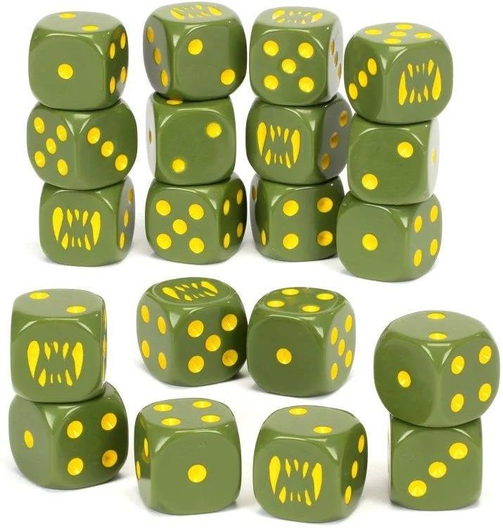 Grand Alliance Destruction Dice Set Premiera 18.09 The set contains 20x 16mm, round-edged dice with traditional pips denoting the numbers, but with a toothed jaw icon in place of the 6. The dice are all green – a colour synonymous with the vicious orruks – with yellow-coloured pips and come …
