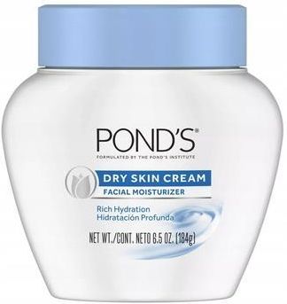 POND'S DRY SKIN CREAM KREM NAWILŻAJĄCY DO SKÓRY SUCHEJ Pojemność: 184 g Intensywnie nawilżający krem do twarzy. Szczególnie polecany jest dla osób, które zmagają się z problemem suchej skóry. Łatwo się wchłania, nie zapychając porów. Przywraca skórze gładkość oraz jędrność. Można go używać zarówno rano jak i wieczorem. Produkt jest hypoalergiczny i przetestowany dermatologicznie. MADE IN USA