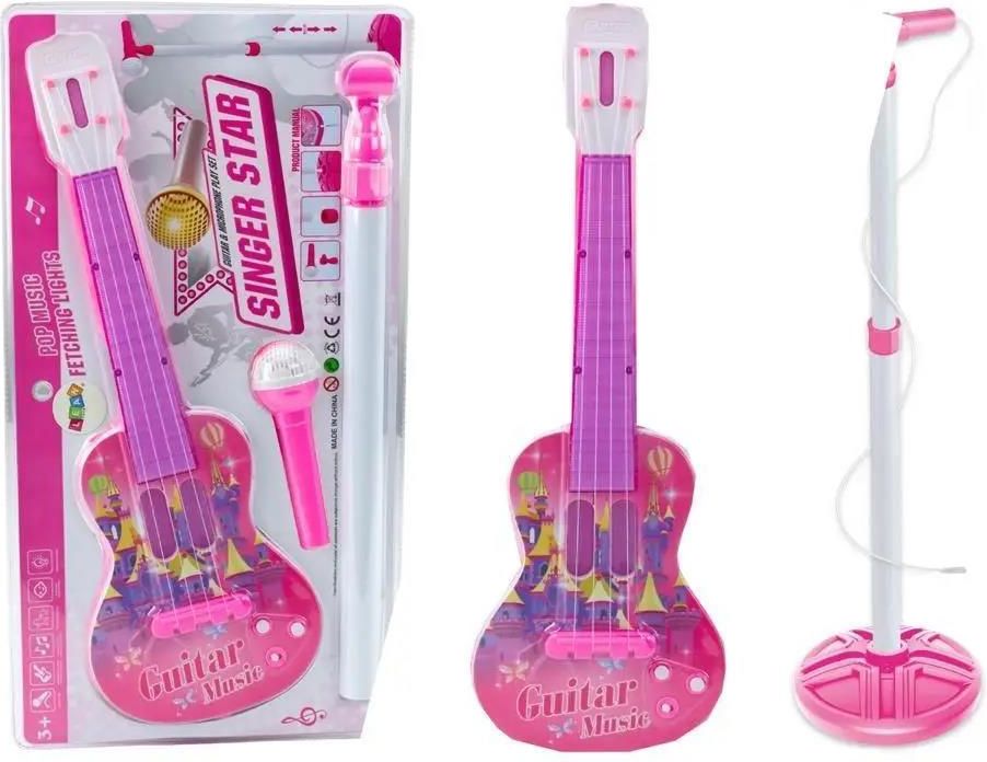 Leantoys Gitara Elektryczna Z Mikrofonem Różowa Bisztynek