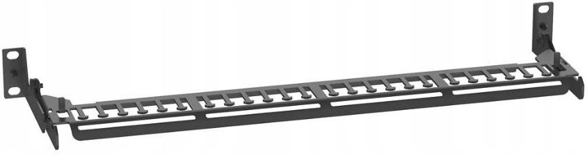 Ruchoma podpórka półka do patchpanela RACK 19" 24p 1U STP Puste panele modularne mają zastosowanie w tworzeniu rozwiązań opartych na systemie modułów RJ45. Przystosowane do wypełniania każdym rodzajem modułów typu keystone. Pozwalają na skonstruowanie panela krosowego ekranowanego i nieekranowanego wszystkich kategorii. Możliwość montażu do każdegp patchpanela prostego Specyfikacja techniczna listwa odciążająca / metalowa podpórka wspiera i zarządza kablami w pomieszczeniach telekomunikacyjnych, zapewnia doskonałą estetykę i organizuje kable zgodnie z określonymi wymaganiami użytkownika; wymiar: wysokość 31.8mm / szerokość 482.6mm / długość 137.2mm; tworzywo: CRS (ang. Carbon Cold Rolled Steel) waga: 360.6g (0.8 lbs); w zestawie: śrubki #12-24, 24 opaski; zgodne z RoHs. Wymiary Przykładowe zastosowanie w szafie/stojaku rack