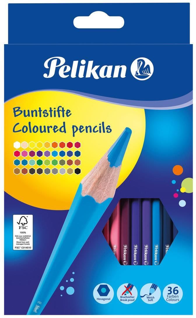 Kredki ołówkowe Pelikan 36 kolorów EAN: 4012700700131 SID: 3143454 Kredki ołówkowe Pelikan 36 kolorów - kredki ołówkowe 36 kolorów - o trójkątnym przekroju ułatwiającym trzymanie kredki w dłoni- wykonane z drewna lipowego- lakierowana oprawa ze znakiem FSC- miękki grafit o intensywnym kolorze- polecane szczególnie w edukacji elementarnej i wczesnoszkolnej- wymiary : 22,5 x 13,5 x 1,8 cm