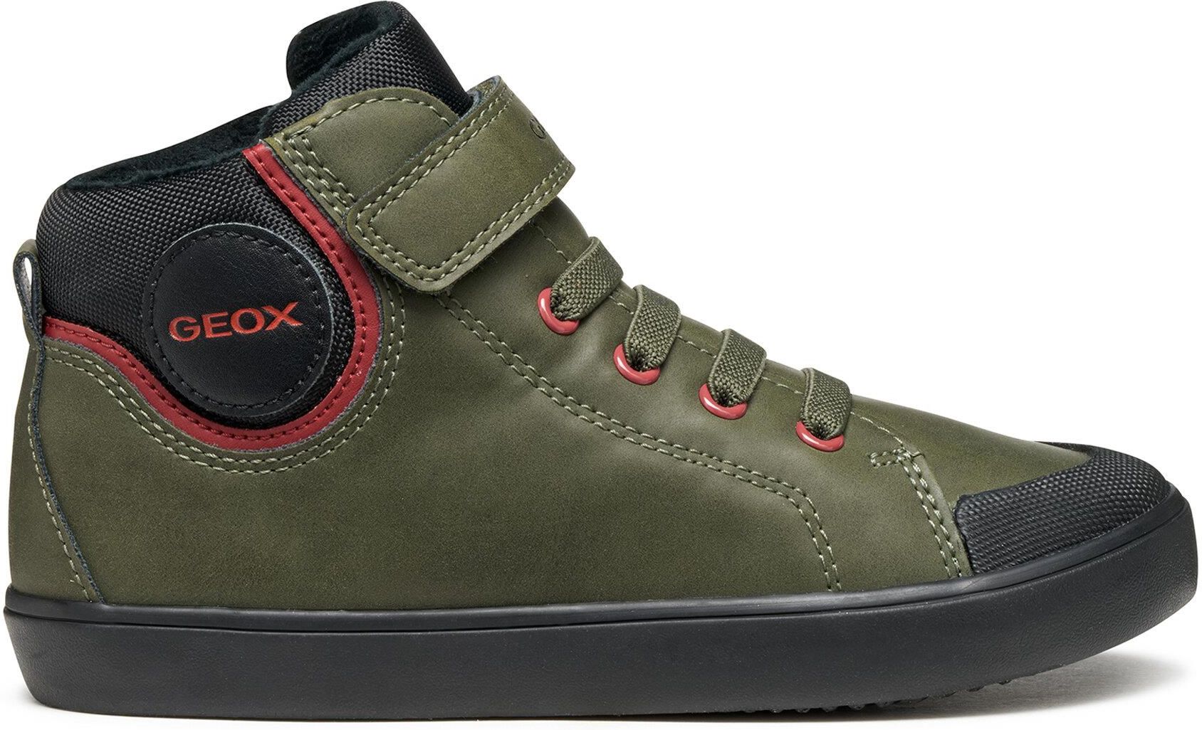 Sneakersy Geox to doskonały wybór dla chłopców, którzy cenią wygodę i nowoczesny styl. Konstrukcja za kostkę zapewnia dodatkowe wsparcie i stabilizację, co sprawia, że buty świetnie sprawdzają się na co dzień. Dzięki ociepleniu, stopy pozostaną ciepłe nawet w chłodniejsze dni, a gumowy klin w cholewce zwiększa elastyczność i komfort użytkowania. Technologia Geox Respira dba o odpowiednią wentylację, zapewniając świeżość przez cały dzień. Wykonane z imitacji skóry sneakersy to połączenie funkcjonalności i stylu – idealne na każdą okazję!