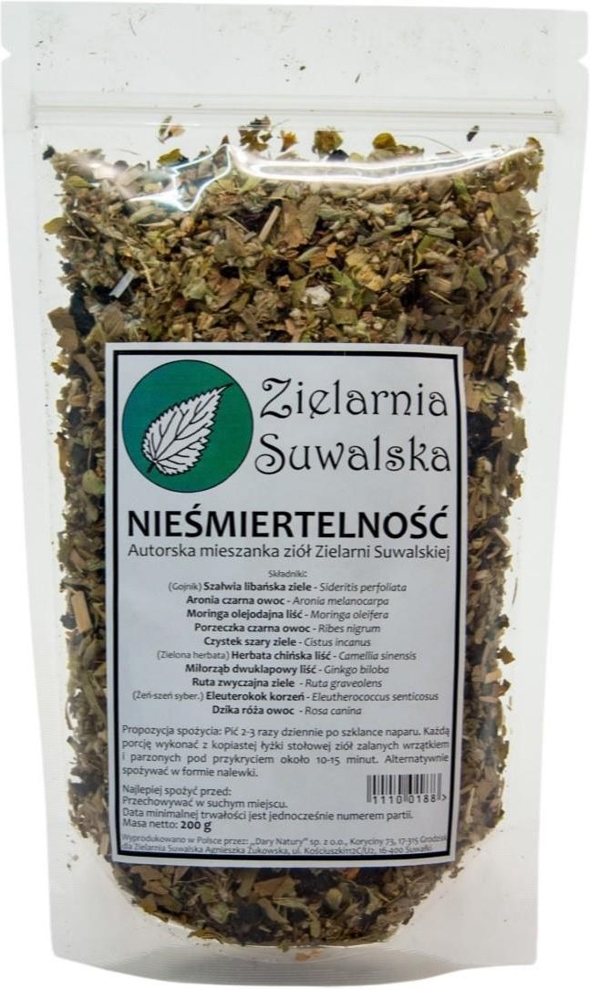 Zielarnia Suwalska Zioła Nieśmiertelność, Szałwia libańska, ziele Aronia czarna, Moringa olejodajna 200g Bisztynek
