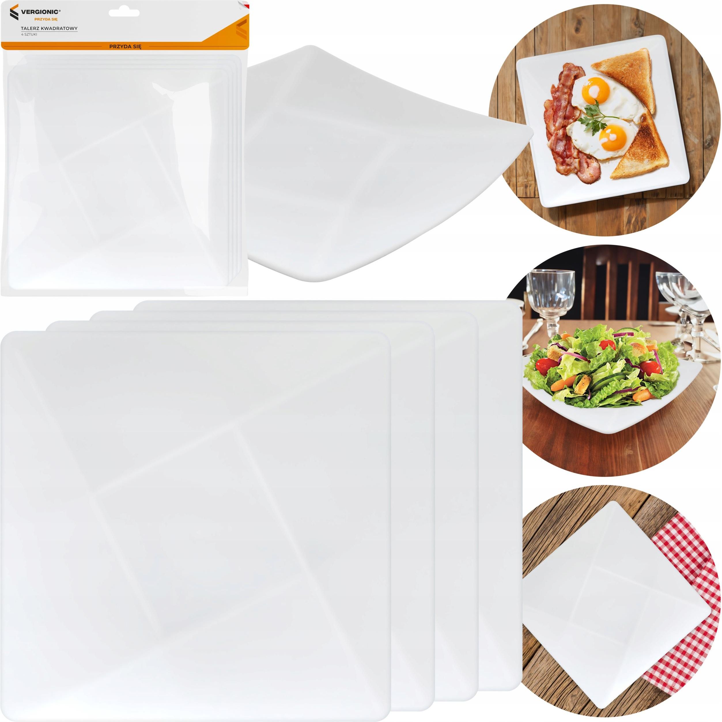 4x Talerz kwadratowy 20,5 cm plastikowy masywny gruby wielokrotnego użycia Blachownia