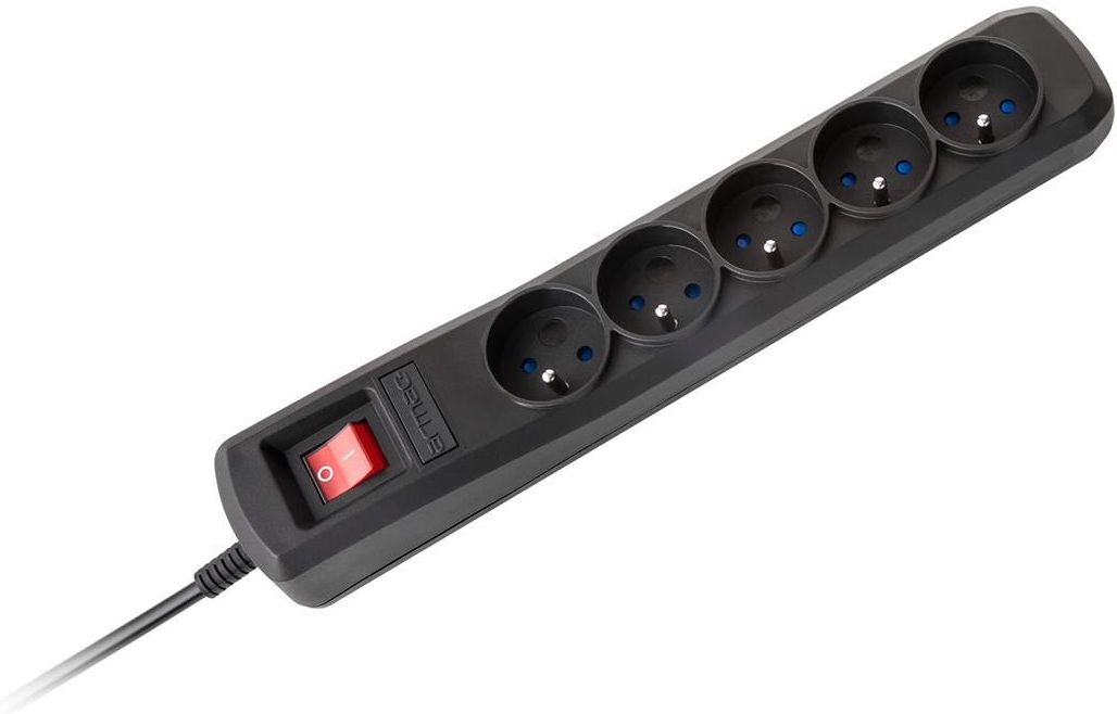 Listwa zasilająca antyprzepięciowa ARCON R5 czarna 5 gniazd 230V 3m R5 to model urządzeń zabezpieczających firmy Arcon. Produkt posiada specjalny system do ochrony przeciwzwarciowej i przeciwprzepięciowej. Zastosowany bezpiecznik automatyczny o działaniu zwłocznym, który nie wymaga wymiany jest doskonałą ochroną. Dodatkowo listwa posiada wbudowane przesłony ochronne gniazd sieciowych. Wysokiej klasy warystor o szybkim czasie działania poniżej 25 nanosekund i wysokiej wartości pochłanianego impulsu 6000A, chroni urządzenie przed niebezpiecznymi skokami napięcia. Charakteryzuje się dużą trwałością i niezawodnością, potwierdzoną wieloletnią pracą u tysięcy zadowolonych użytkowników. Listwa została wyprodukowana w Polsce. Charakterystyka R5 nie zajmuje dużo miejsca i w połączeniu z możliwością montażu do podłoża, jest produktem uniwersalnym o szerokim wachlarzu zastosowania. Zabezpiecza przed zwarciami, jak i niebezpiecznymi skokami napięcia urządzenia elektroniczne w domu i w biurze. Zalety listwy to: 5 gniazd sieciowych z bolcem uziemiającym 3 metrowy przewód zasilający Sygnalizacja zasilania Podświetlany wyłącznik Bezpiecznik automatyczny Niepalna obudowa Dane techniczne Długość przewodu: 3m Napięcie znamionowe Un: ~230V Częstotliwość: 50 Hz Prąd znamionowy / Maksymalne obciążenie ∑In: 10A (2300W) Absorpcja energii (sumaryczna): 155J Prąd upływu: 0,5mA Czas reakcji: <25ns Maksymalny prąd wyładowczy Imax: 6kA – 8/20 µs Napięcie trwałej pracy Uc: 250V 50Hz Napięciowy poziom ochrony Up: ≤1,2kV Napięcie próby Uoc: 4kV Zabezpieczane linie: L-N Bezpieczniki: Bezpiecznik automatyczny 10A/250V System ochrony przeciwporażeniowej: kołki ochronne gniazd połączone z przewodem ochronnym Ilość gniazd: 5 Wtyk: PN-E-93203 typ 2P + uziemienie Wyłącznik: podświetlany, dwubiegunowy Obudowa: tworzywo sztuczne, samogasnące Waga netto (g) bez przewodu: 250 Warunki pracy: wewnątrz O marce Marka ARCON , należąca do ARMAC Sp. z o.o. – firmy z ponad 25-letnim doświadczeniem w branży elektrycznej – oferuje nowoczesne rozwiązania z zakresu ochrony przeciwprzepięciowej. ARMAC Sp. z o.o. to czołowy polski producent, specjalizujący się w projektowaniu i produkcji wysokiej jakości filtrów przeciwzakłóceniowych, przedłużaczy elektrycznych oraz urządzeń zabezpieczających przed przepięciami. Urządzenia marki ARCON zapewniają skuteczną ochronę sprzętu elektrycznego, takiego jak urządzenia komputerowe, sprzęt audio-video, modemy, telefony, drukarki, centrale telefoniczne oraz systemy pomiarowe. Dzięki wieloletniemu doświadczeniu ARMAC Sp. z o.o. oraz wysokiej jakości wykonania, marka ARCON stanowi doskonały wybór dla osób i firm poszukujących skutecznych i trwałych rozwiązań ochrony przeciwprzepięciowej.