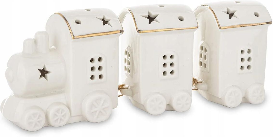Art. Dekoracyjny Pociąg Led Dekoracja z kolekcji Uniwers obejmuje figurki świąteczne. Dzięki kolorowym figurkom twój wystrój świąteczny mieszkania nabierze nowego wymiarTe ozdoby pięknie zaprezentuą się w salonie i w biurze. Figurkii i zawieszk Uniwers również to świetny pomysł na prezent świąteczny.Takich pięknych dekoracji nie powinno zabraknąć w naszym otoczeniu. Cechy produktu Tradycyjny motyw świąteczny Ceramika idealna do uroczystego udekorowania wnętrz Dekoracja świąteczna, która będzie cieszyć oko przez długi czas Podstawowe dane Kolor: biały Material: ceramika Rozmiar :9x24x6 Galeria produktu