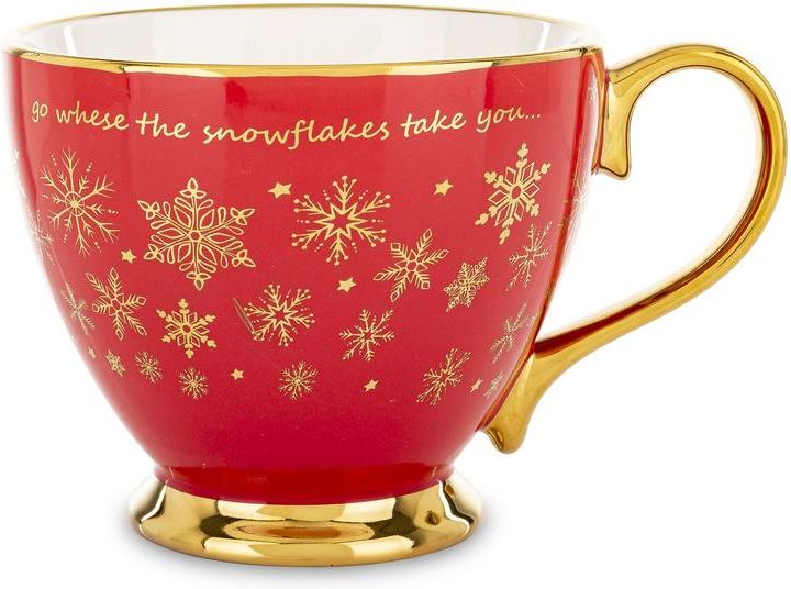 Świąteczny kubek porcelanowy 380 ml – czerwony ze złotymi dodatkami i motywem śnieżek ❄️ 182114 Stwórz bajkową atmosferę świąt dzięki eleganckiemu kubkowi porcelanowemu o pojemności 380 ml. To nie tylko praktyczny element codziennych rytuałów, ale także wyjątkowa ozdoba, która wprowadzi do Twojego domu ciepły, magiczny klimat Bożego Narodzenia. Kubek został wykonany z wysokiej jakości porcelany, dzięki czemu jest trwały i elegancki. Czerwona powierzchnia zdobiona złotymi akcentami i motywem śnieżek sprawia, że każde spojrzenie na niego przywołuje na myśl zimowe wieczory i świąteczne chwile spędzone z rodziną. Idealny na prezent, a także jako część świątecznej zastawy. 🎁 🌟 Najważniejsze cechy produktu Pojemność: 380 ml – idealny na kawę ☕, herbatę 🍵 czy gorące kakao 🍫. Wymiary: 9,5 × 14,5 × 11 cm. Waga: 0,43 kg – poręczny i wygodny w użytkowaniu. Materiał: wysokiej jakości porcelana. Kolorystyka: klasyczna czerwień z luksusowymi złotymi dodatkami. Motyw: zimowe śnieżki ❄️ – subtelny akcent wprowadzający świąteczny nastrój. Czyszczenie: kubek nie nadaje się do zmywarki ani mikrofalówki ❌ – zalecane mycie ręczne. 🎁 Dlaczego warto wybrać ten kubek? Tworzy świąteczną atmosferę przy każdym łyku ulubionego napoju. Świetnie sprawdzi się jako prezent dla bliskiej osoby. Doskonały element dekoracyjny świątecznego stołu. Niezastąpiony podczas zimowych wieczorów spędzonych w rodzinnym gronie. Ten świąteczny kubek porcelanowy 380 ml to połączenie elegancji, funkcjonalności i magii Bożego Narodzenia. Idealny wybór, aby każdy dzień zimy był pełen ciepła i radości! 🎄