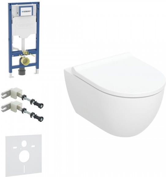 Stelaż podtynkowy: statyczna rama samonośna, zabezpieczona przed korozją powłoką malowaną proszkowo rama do wiszących misek WC o wymiarach przyłączeniowych zgodnych z normą EN 33 i wysunięciu do 70 cm z wysuwaną blachą do bocznego mocowania nad elementem na profilach metalowych lub drewnianych bądź na elementach konstrukcyjnych Geberit Duofix alternatywna pozycja mocowania wspornika dystansowego obrotowe stopy, odpowiednie do montażu w profilach U UW 50 i UW 75 stopy można zamontować w szynie systemowej Geberit Duofix bez użycia narzędzi, bez dodatkowych komponentów ocynkowane nogi montażowe, zabezpieczone przed korozją, antypoślizgowe kolano przyłączeniowe z możliwością montażu na różnych głębokościach bez użycia narzędzi, zakres regulacji 45 mm spłuczka podtynkowa Geberit Sigma 12 cm, z izolacją przeciwroszeniową go uruchamiania z przodu, nadaje się do spłukiwania jednoilościowego, dwudzielnego i spłukiwania z funkcją "stop" w przypadku ustawień fabrycznych ponowne spłukiwanie możliwe natychmiast prace montażowe i serwisowe przy spłuczce podtynkowej bez użycia narzędzi przyłącze wody z tyłu lub na górze na środku obudowa ochronna otworu rewizyjnego z możliwością skrócenia, chroni przed wilgocią i zabrudzeniami z peszlem ochronnym do dopływu dla toalet myjących Geberit AquaClean i do przewodu przyłączeniowego mocowanie przyłącza elektrycznego i Power & Connect Box do kompletowania z przyciskiem spłukującym Miska WC wisząca: wymiary: 35,5x53 cm wysokość: 33,5 cm bez wewnętrznego kołnierza z technologią spłukiwania TurboFlush z ukrytymi mocowaniami pełna ilość wody 6/5/4 l spłukiwanie: 4 l kolor: biały Deska WC: wolnoopadająca materiał: duroplast zawiasy blokowane mocowanie od góry z zawiasami QuickRelease kolor: biały Wsporniki dystansowe: regulacja głębokości 13-20 cm materiał cynkowy odlew ciśnieniowy do mocowania elementów montażowych Geberit Duofix przed ścianami gipsowo-kartonowymi i ścianami pełnymi do mocowania w ściance instalacyjnej na wysokość elementu montażowego płynna regulacja głębokości od przodu, z szybkim ustawieniem mocowanie do ściany obracane o 360° pręt gwintowany M10, ocynkowany 2 sztuki w zestawie Zestaw do izolacji akustycznej: przekładka akustyczna do miski WC lub bidetu wiszącego kolor: biały