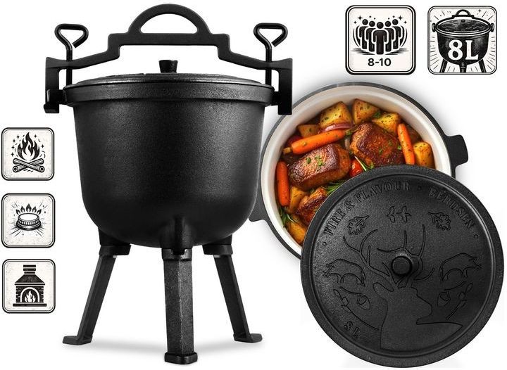 GARNEK EMALIOWANY KOCIOŁEK ŻELIWNY EMALIOWANY 8 l na ognisko grill + PRZEPISY Gotuj jak dawniej i jedz jak królowie! Chcesz prawdziwego smaku? Potrzebujesz prawdziwego sprzętu. Ten kociołek to kawał żeliwa – ciężki, stabilny i nie do zdarcia. Wrzucasz składniki, zakrywasz pokrywą i robisz jedzenie, …