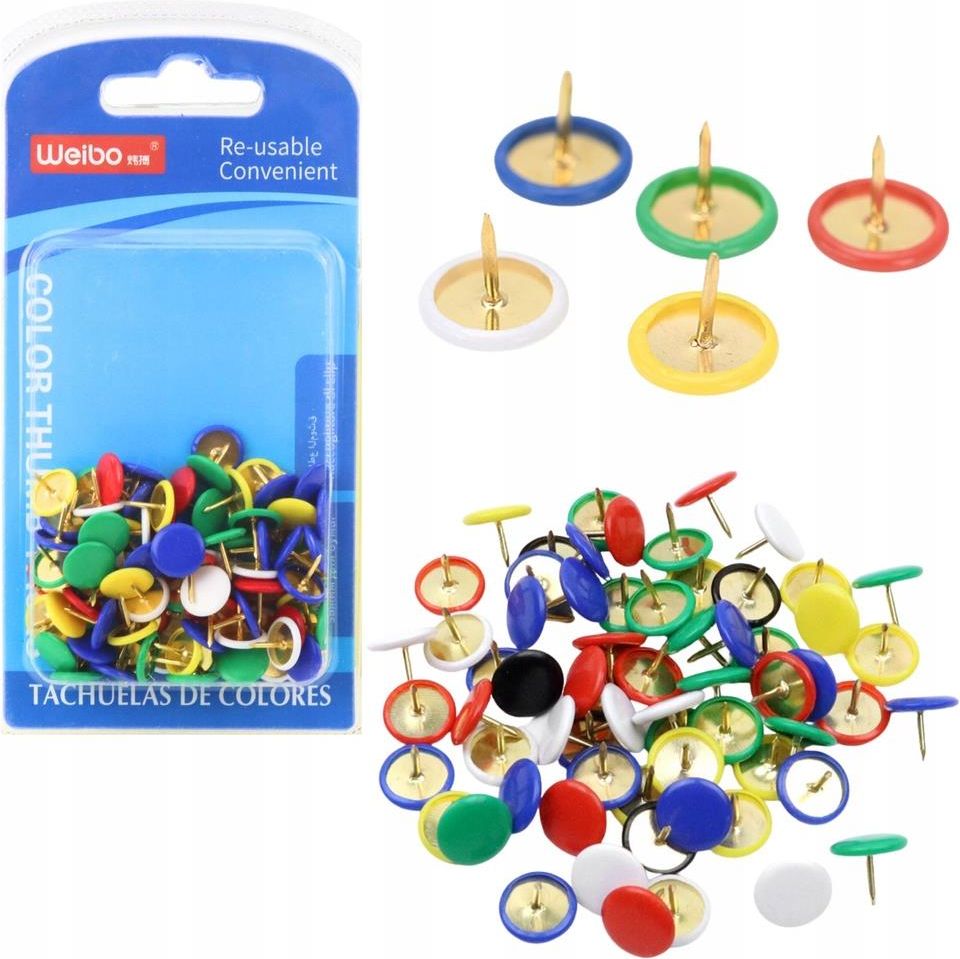 Lean Zestaw Kolorowych Pinezek Z Płaską Główką 90 Szt. Do Biura Szkoły Blachownia
