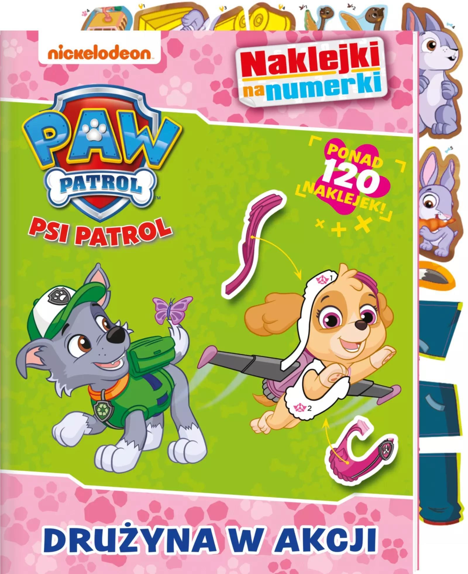 Psi Patrol Naklejki na numerki Drużyna w akcji Media Książka Naklejki na numerki to doskonała zabawa, a jednocześnie świetne ćwiczenie precyzji, spostrzegawczości, wyobraźni i pamięci. Różnokształtne naklejki zostały ponumerowane, a obrazki mają cyfry z brakującym fragmentem. Znajdź i połącz numery …