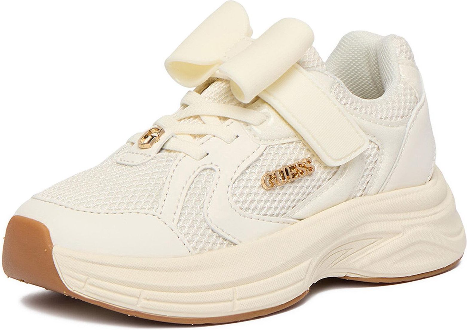 Te urocze sneakersy dla dziewczynki od Guess to idealne połączenie stylu i funkcjonalności! Wykonane z miękkiego, włókienniczego materiału, są lekkie i przewiewne, więc zapewniają komfort przez cały dzień. Okrągły nosek daje małym stópkom odpowiednią przestrzeń, a zapięcie na rzep oraz elastyczne sznurówki ułatwiają zakładanie butów, co z pewnością docenią zarówno dzieci, jak i rodzice. Subtelna kokarda dodaje im dziewczęcego uroku, dzięki czemu sneakersy świetnie sprawdzą się zarówno do szkoły, jak i na wyjątkowe okazje. Wybierz praktyczność w modnym wydaniu i podaruj swojemu dziecku wygodę każdego kroku!