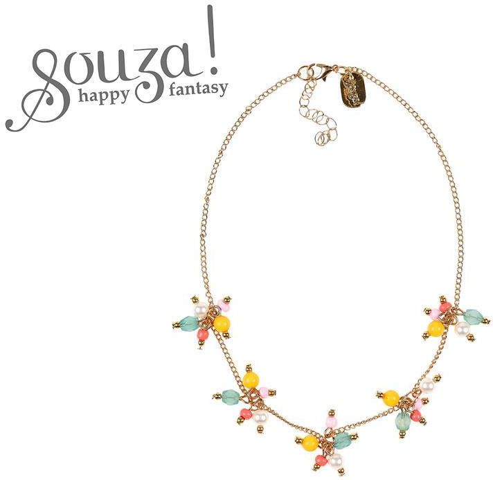 Naszyjnik łańcuszek Valeia holenderskiej marki Souza! Ozdobiony jest pięcioma zawieszkami z kolorowych koralików. Ma 40 cm długości, regulowane zapięcie i jest wygodny do nakładania. Biżuteria jest nietoksyczna i nie podrażnia skóry. Idealna zarówno na przyjęcia, jak i do noszenia na co dzień. …