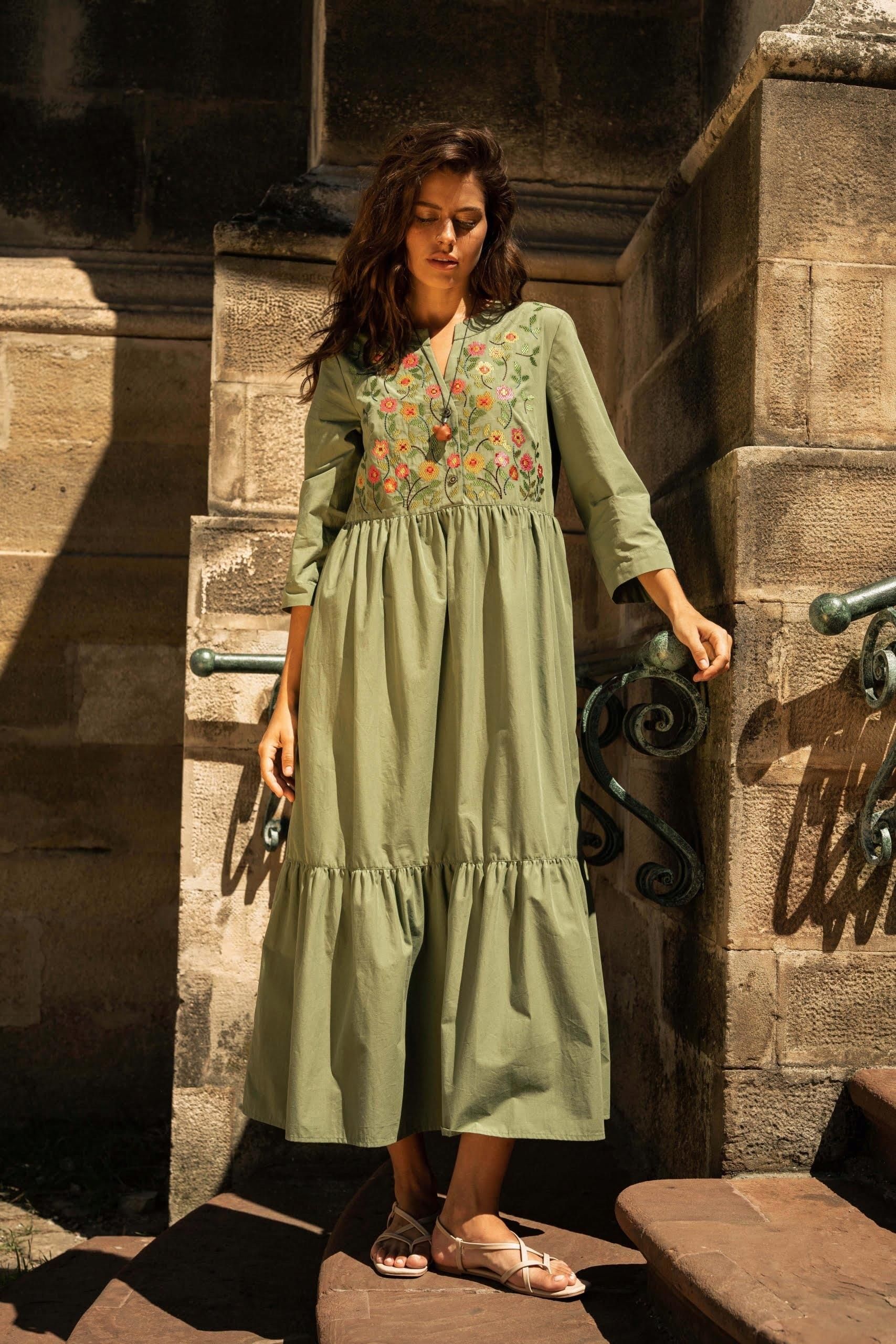 Suknia Haftowana Ciemno Zielona Jakość Premium L (40) Blachownia