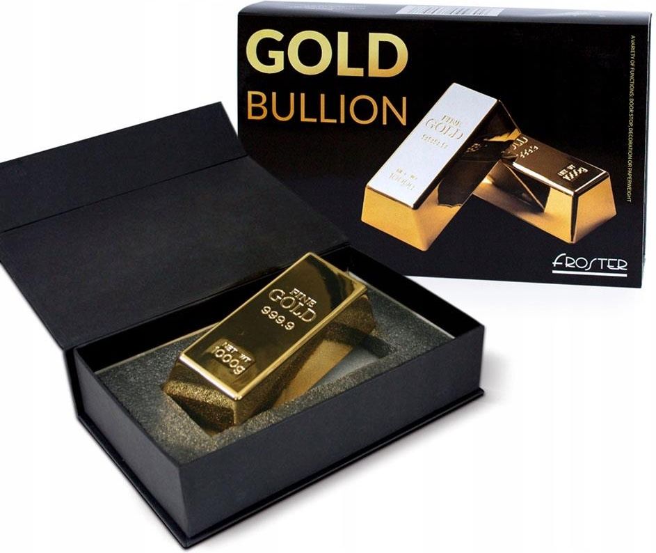 *** SERDECZNIE WITAMY NA AUKCJI SKLEPU "RAJ PREZENTÓW" I ZAPRASZAMY DO ZAKUPÓW :) *** Przedmiot aukcji "Sztaba złota" - ORYGINAŁ ! Bardzo przydatna namiastka prawdziwego luksusu. Unikalny stoper do drzwi i nie tylko Wyobrażasz sobie, że jesteś tak bogaty, że podpierasz drzwi sztabkami złota albo drogocenny kruszec służy ci po prostu jako dekoracja? Pewnie wydaje Ci się, że mógłbyś pozwolić sobie na taką ekstrawagancję tylko wtedy, jeśli zarabiałbyś miliony. I tu się mylisz! Prezent dla wielbiciela luksusu Możesz mieć sztabkę ważącą 0,6 kg za naprawdę niewielkie pieniądze i zrobić z nią, co zechcesz: możesz używać jej jako przycisk do papieru, podpórkę, dekorację, lub po prostu chwalić się nią przed gośćmi. Nie jest to wprawdzie prawdziwe złoto, ale tak wygląda! I nie wydasz na nie majątku. Sztaba złota to doskonały prezent dla wielbicieli i wielbicielek luksusu – na pewno zaskoczy ich taki podarek!Może pełnić różne funkcje: stoper do drzwi, dekoracja lub przycisk do papieru. Wymiary: 5 cm (wysokość), 17,5 cm (długość), 10 cm (szerokość). Produkt zapakowany w pudełko prezentowe z maganetycznym zapięciem. Wymiary w opakowaniu: 6,5 x 17,0 x 26,0 (cm). Waga: 1,00 kg. Co nas wyróżnia Rzetelna firma, istniejąca od 2006 r. Najwyższa jakość obsługi klienta. Ekspresowa realizacja zamówień. Bezproblemowa wymiana lub zwrot. Oryginalne i legalne produkty. *** Nie ryzykuj !!! Zawsze kupuj u sprawdzonych sprzedawców, jak sklep "Raj Prezentów", by mieć pewność, że kupujesz oryginalne produkty, a Twoje zamówienie zostanie zrealizowane rzetelnie, uczciwie i ekspresowo. ***