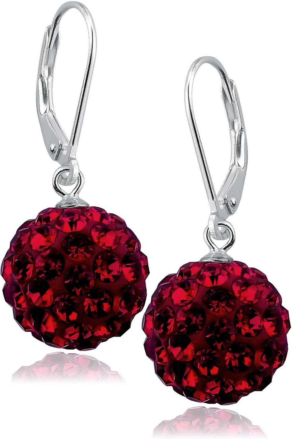 Valerio Eleganckie wiszące kolczyki czerwone kuleczki Swarovski 12mm shamballa srebro 925 (ALZD12MDR) Blachownia